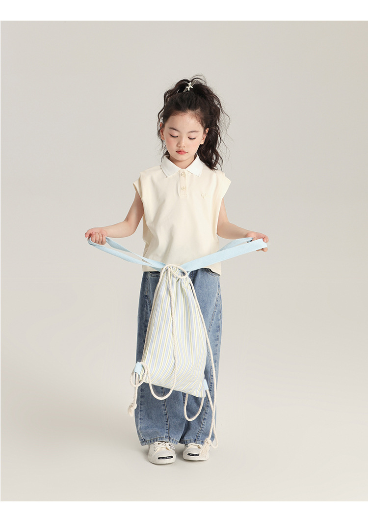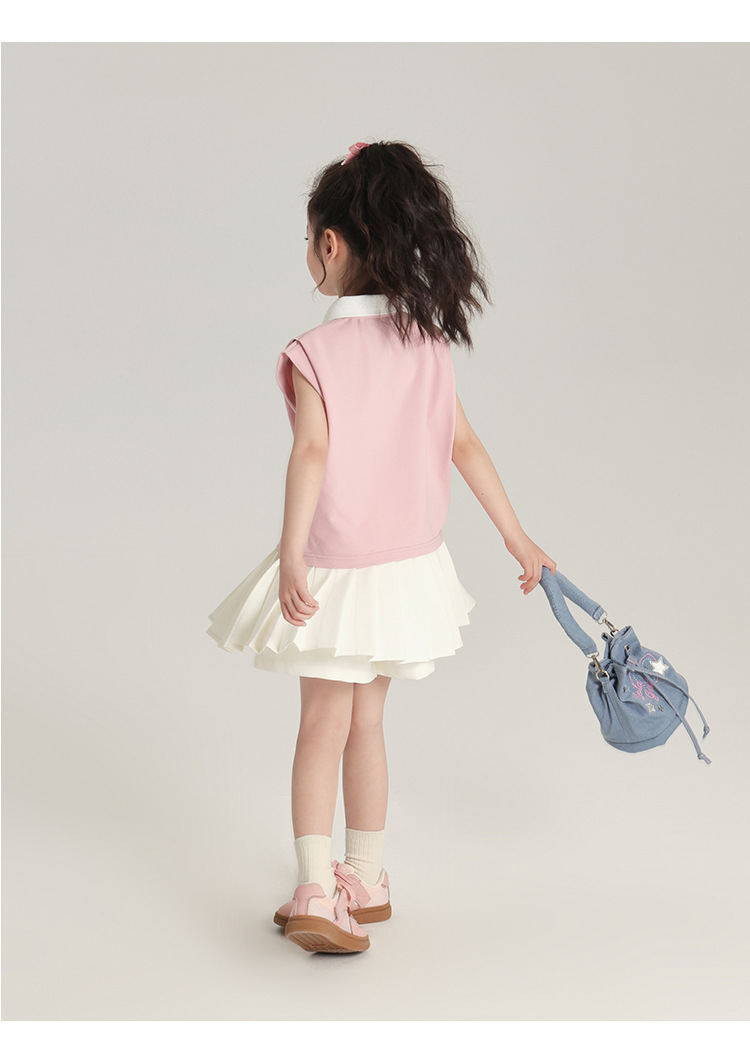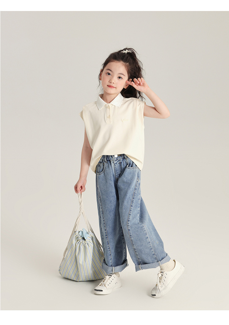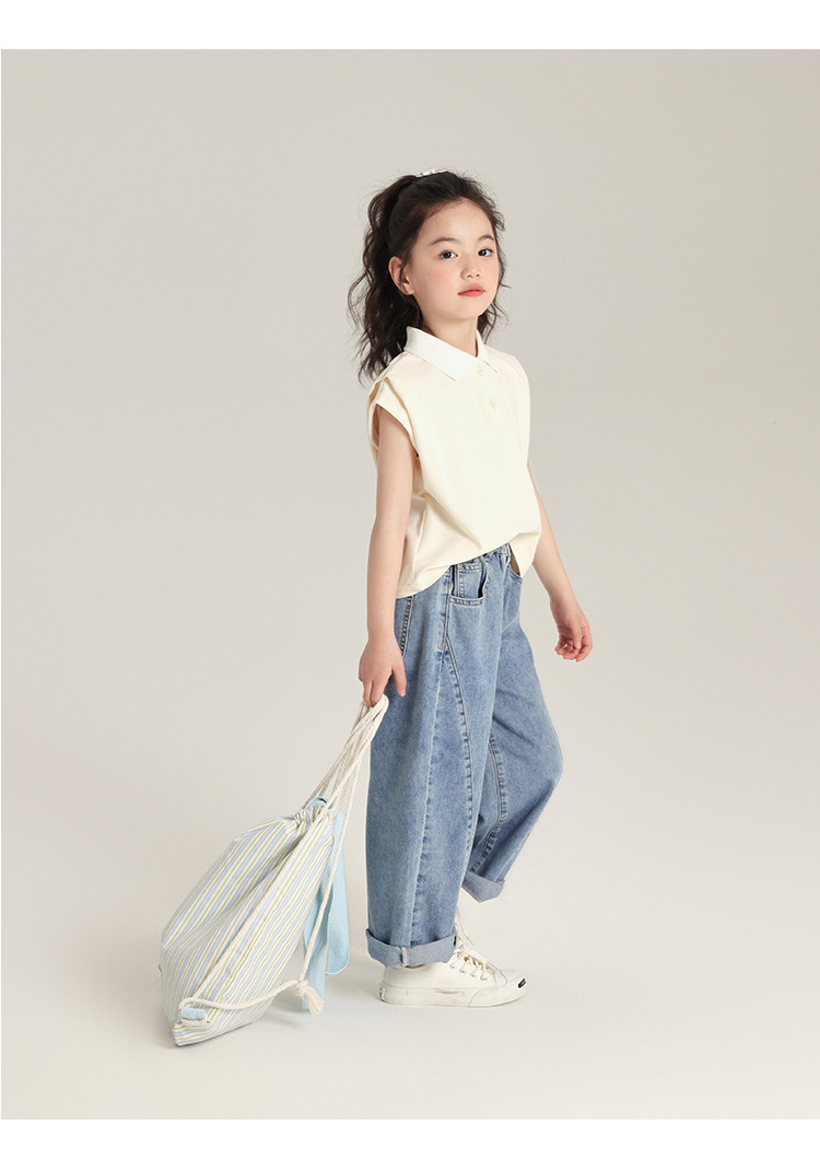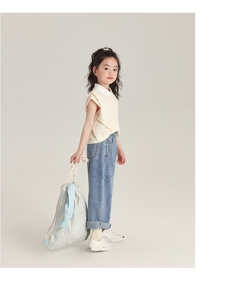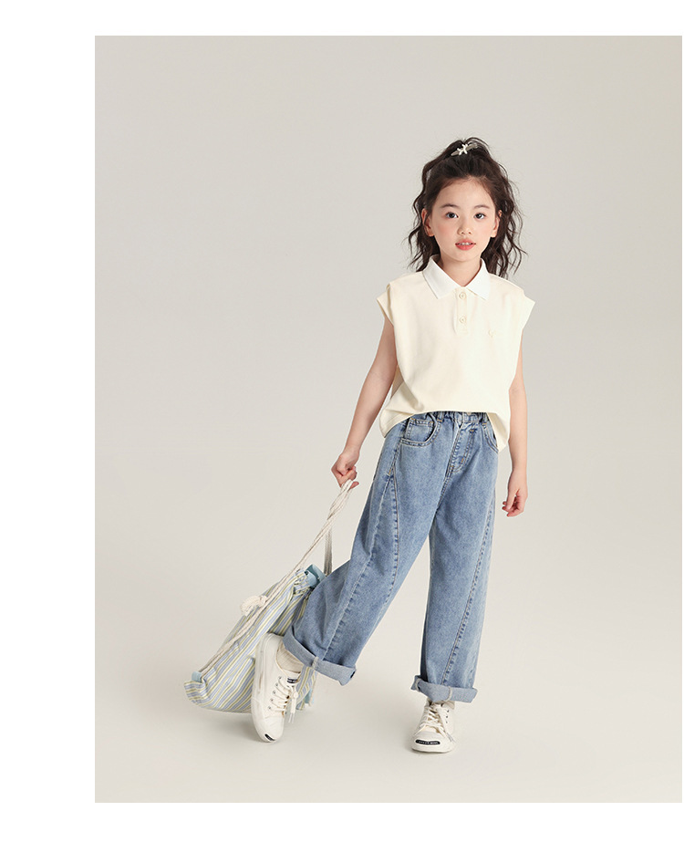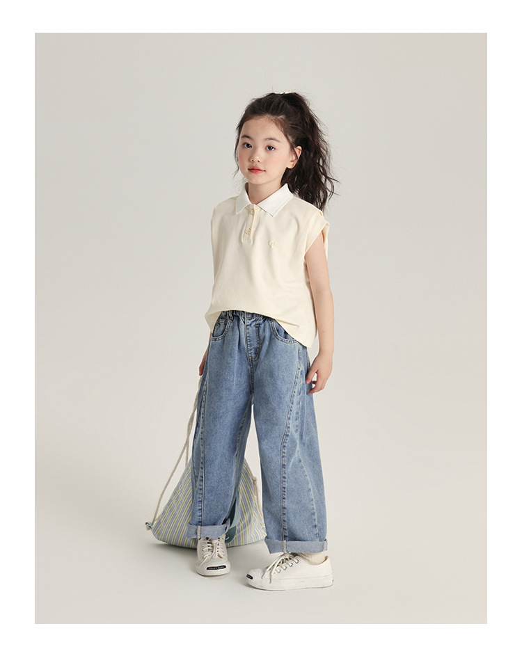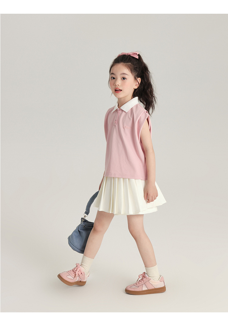2025年新作 カジュアルでトレンディな女の子用半袖Tシャツ 可愛いポロシャツ 立体発泡プリント 子供用Tシャツ