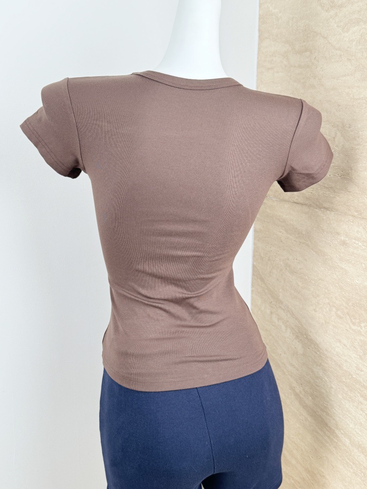 スポットベーシックストレッチモーダル右肩レディーススリムスポーツトップアメリカンホットガール砂時計ウエスト半袖Tシャツ