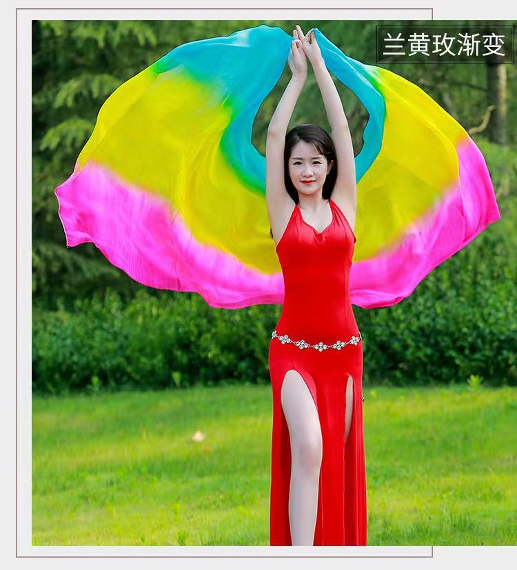 卸売りのベリーダンスのシルクのガーゼの手はガーゼのダンスのグラデーションの色のショーを投げて練習します。