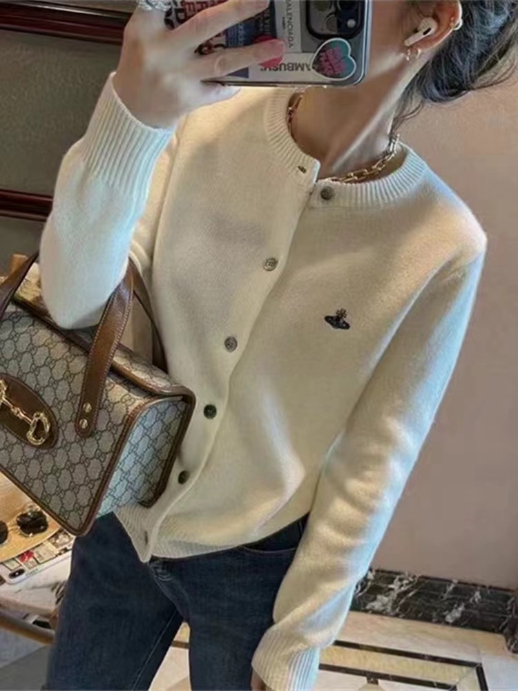 カーディガン レディース 100%ピュアウール ラウンドネックセーター 秋冬ニットインナー 刺繍 宇宙柄 メーカー卸売 ウールセーター