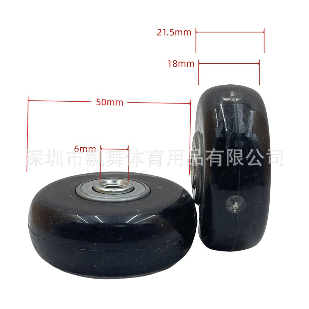 ブラック 50*18mm PU フラッシュホイール ベアリング付き 2 個 + ネジ 2 本、長さ 36 + ロッド 2 本、長さ 32 + レンチ 2 個 + スペーサー 4 個 (重量 190 グラム)