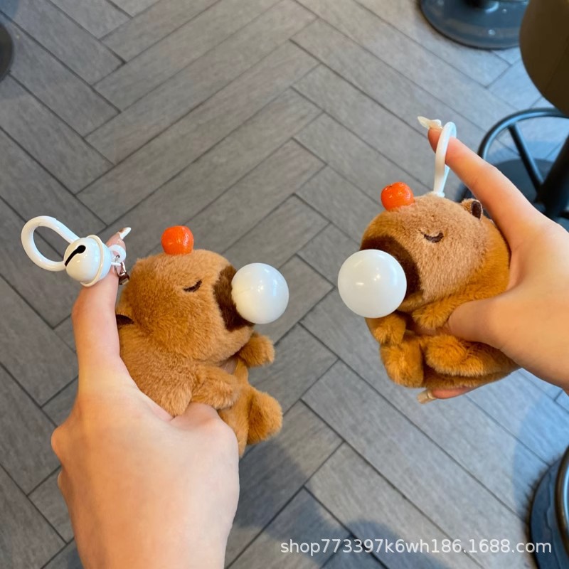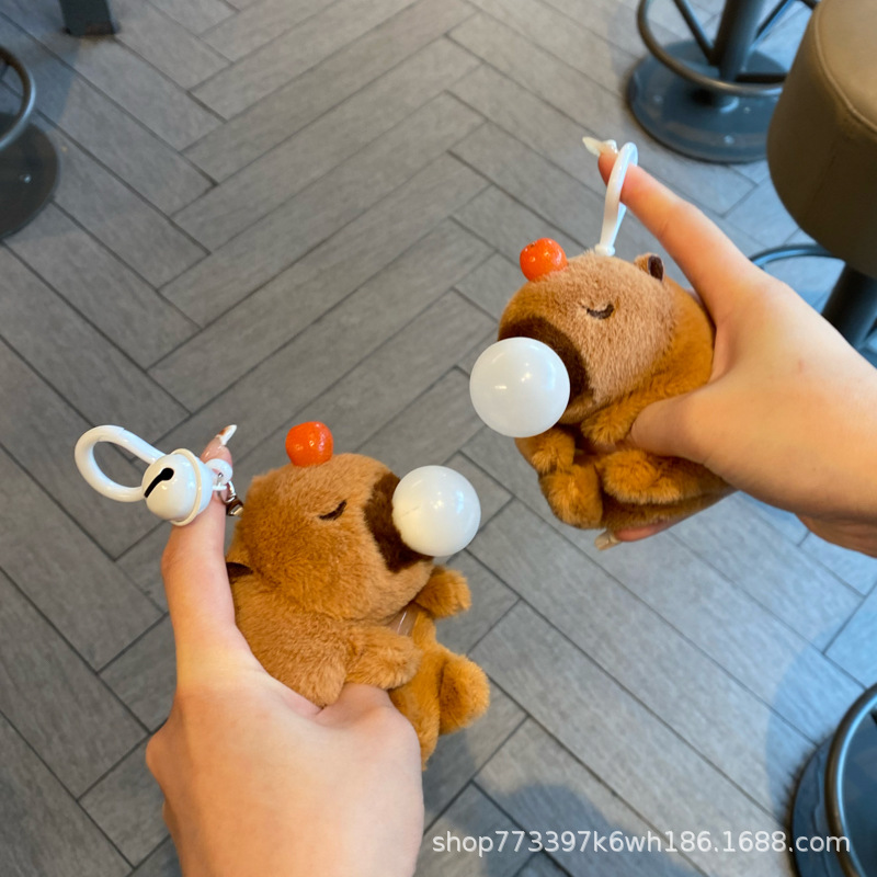 ギシギシと鳴くカピバラのカピバラのぬいぐるみが泡を吐いてつまみます。プレゼントが可愛いです。