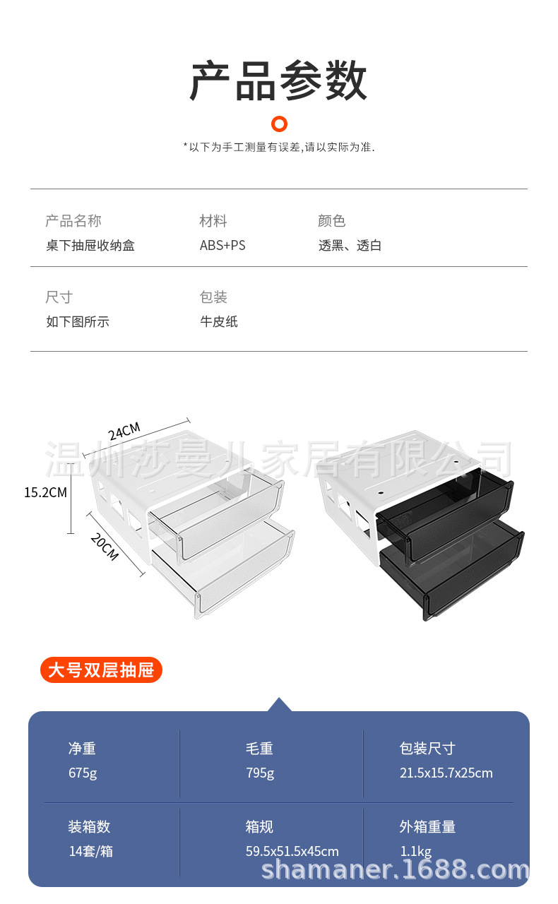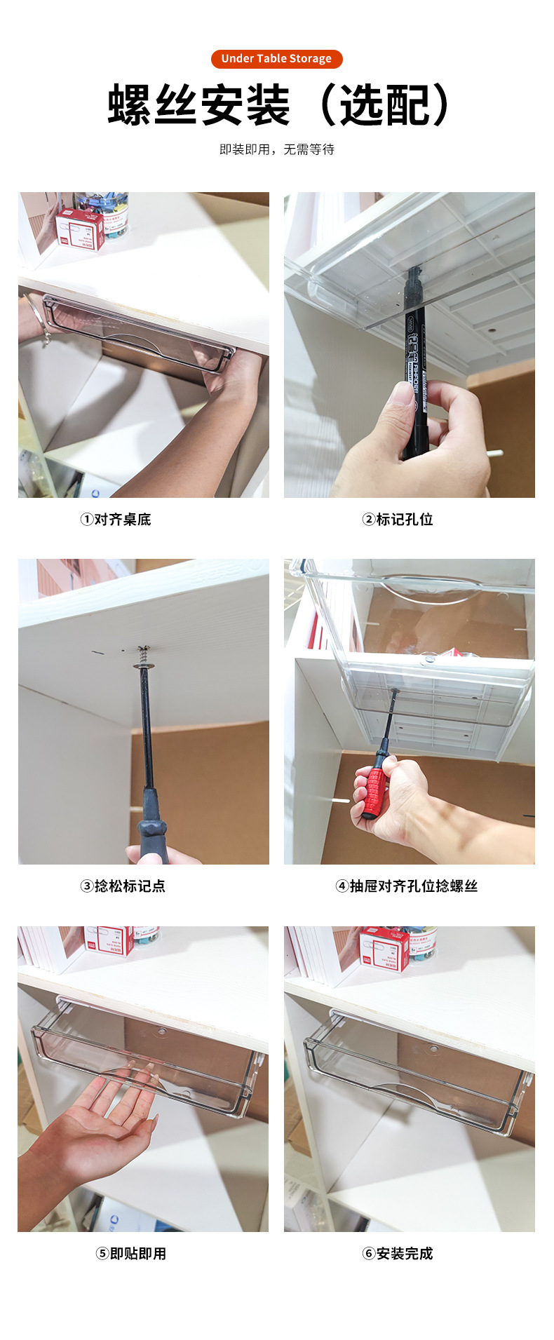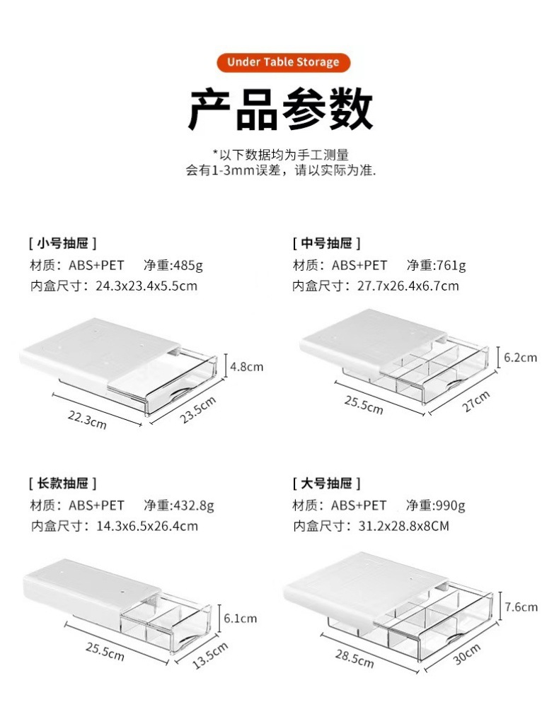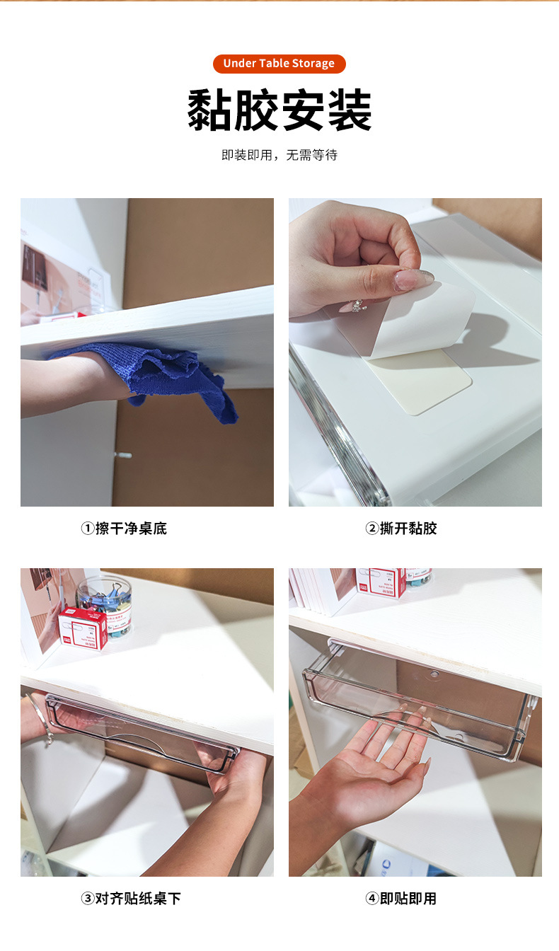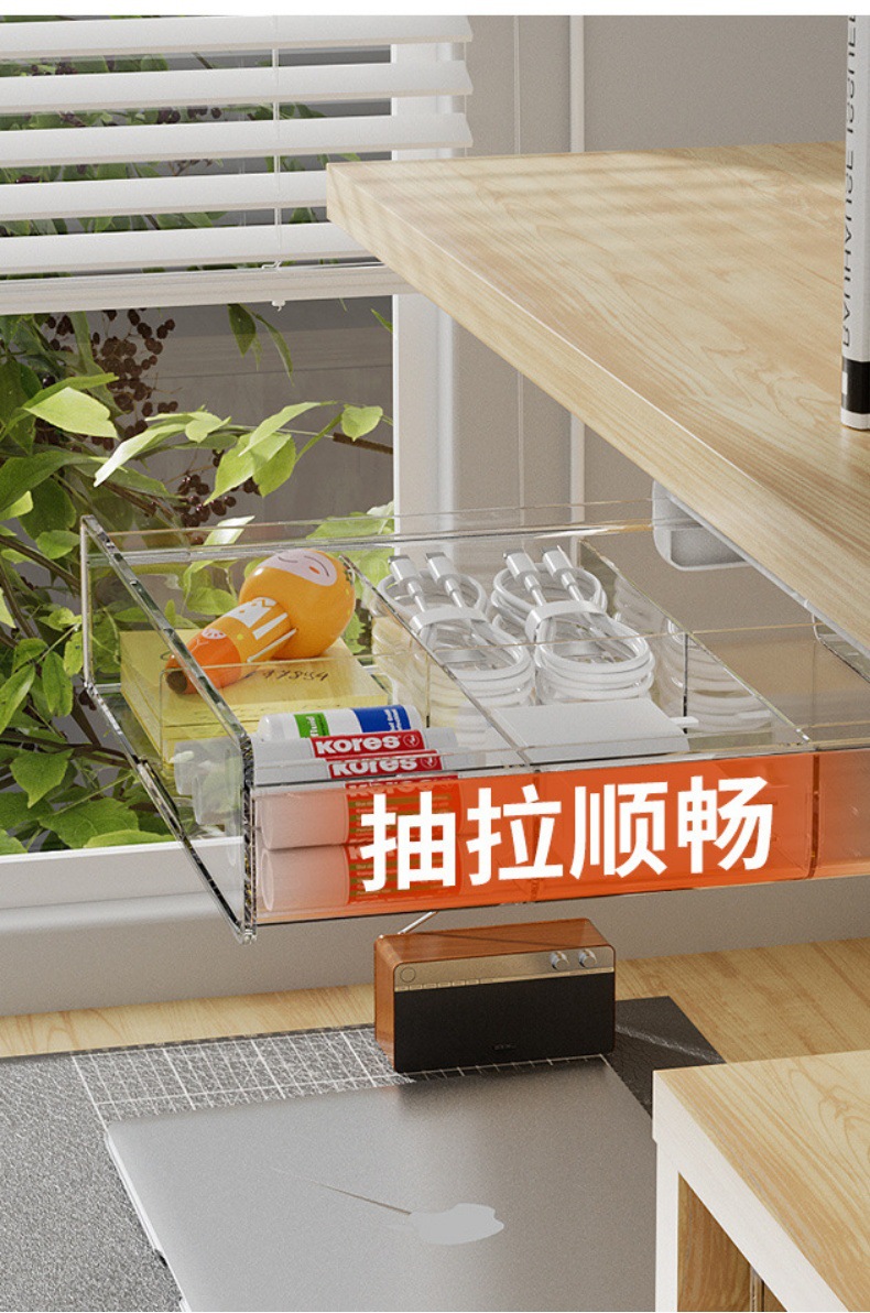 文房具オフィスデスク防塵穴あけ不要引き出し式子供用整理収納収納ボックス(机下収納ボックス)