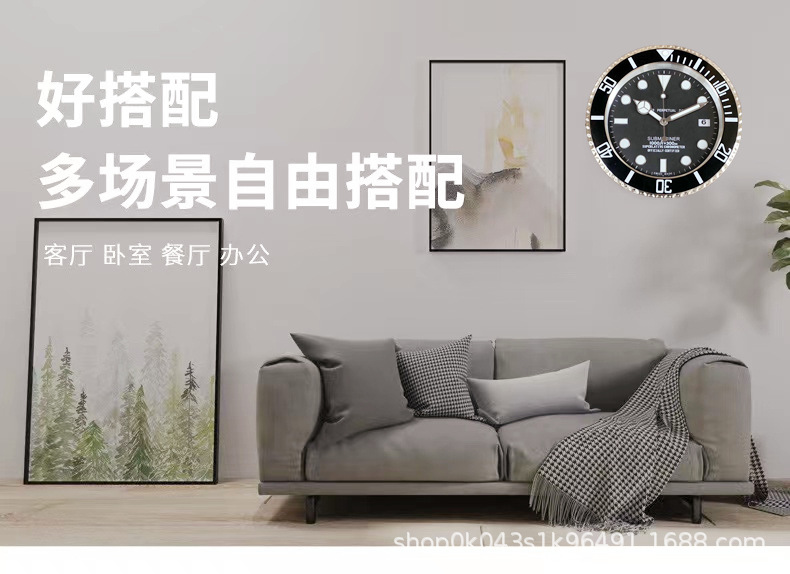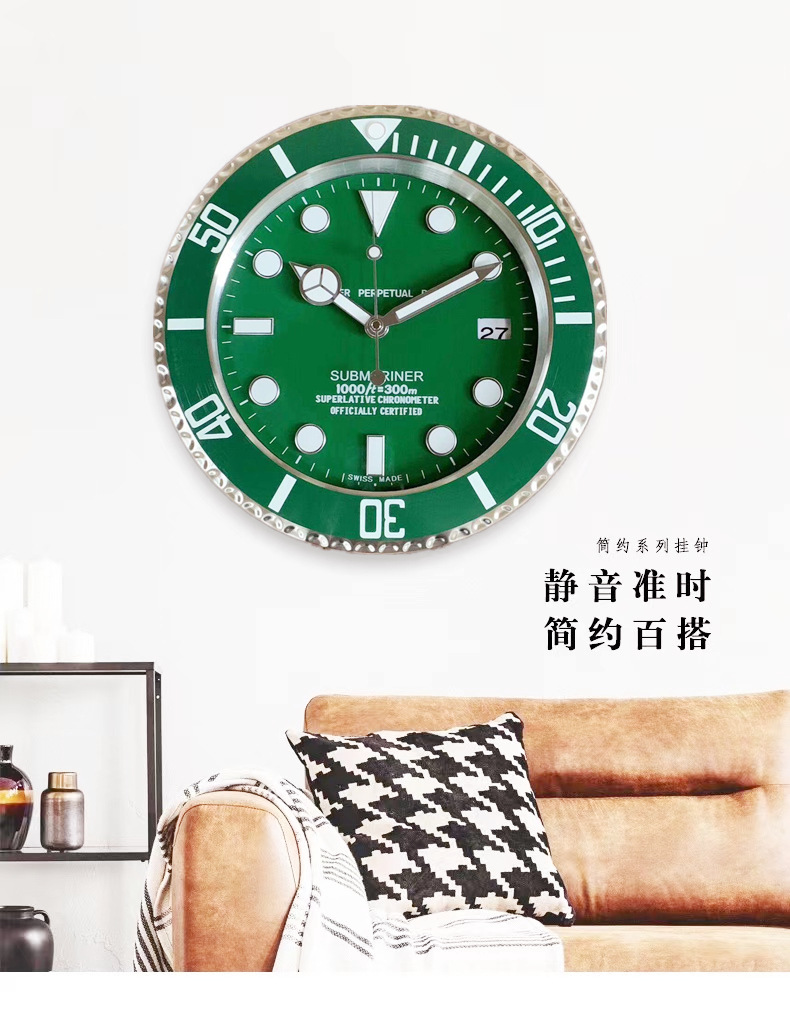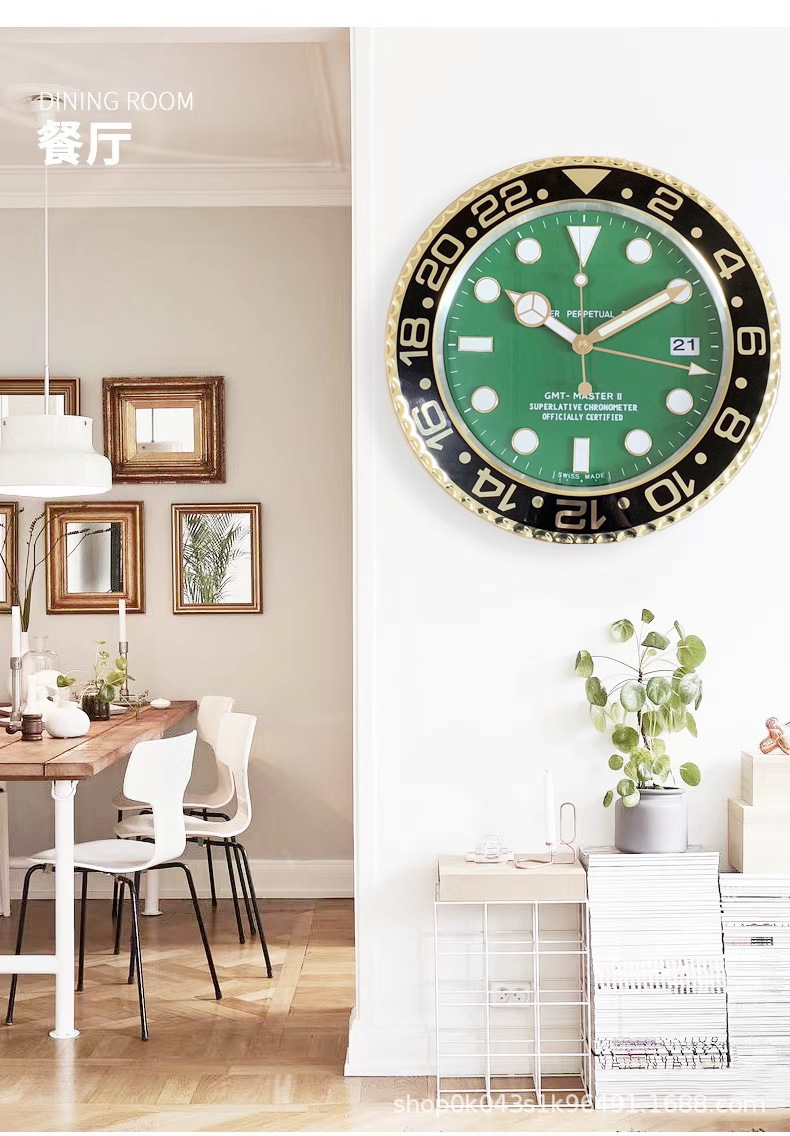中世風の金属製壁掛け時計、静音仕様、リビングルームに最適です。