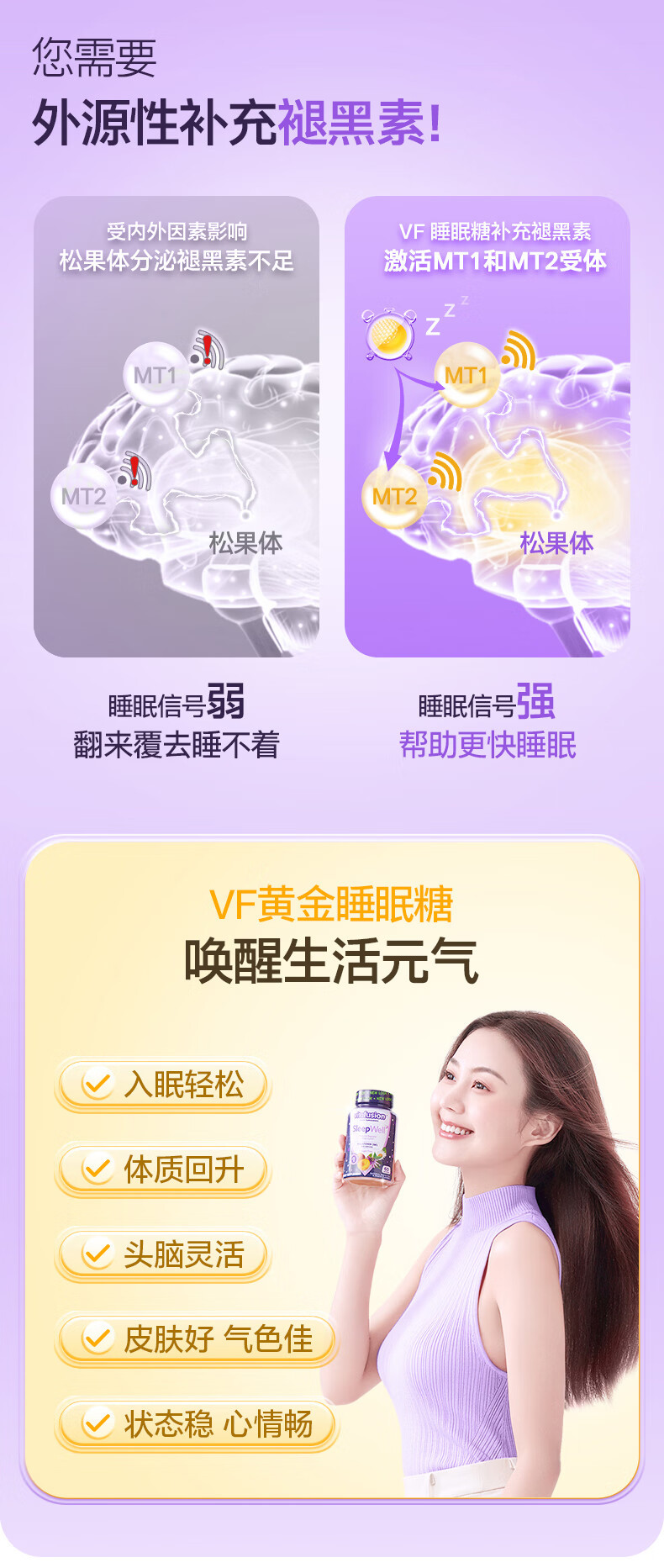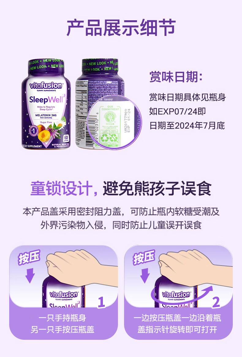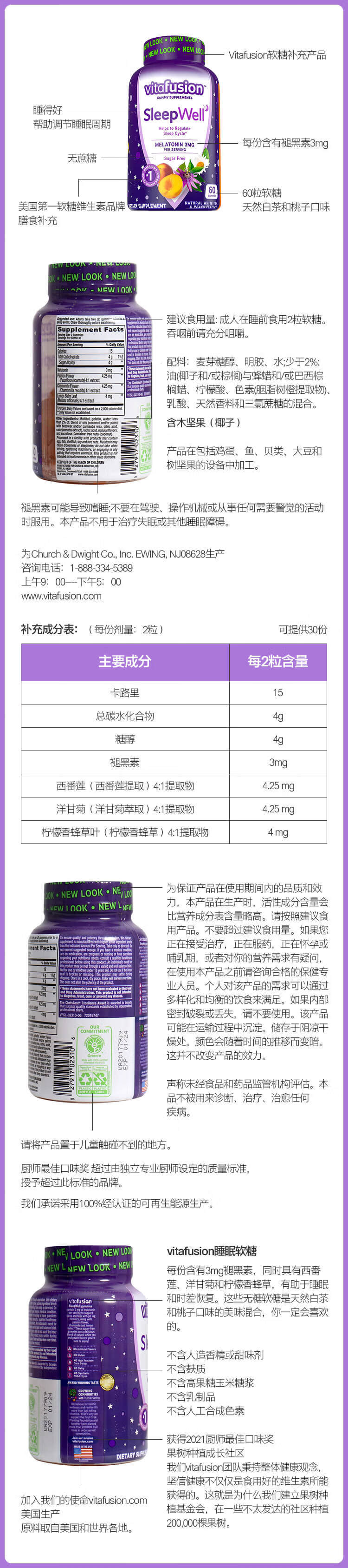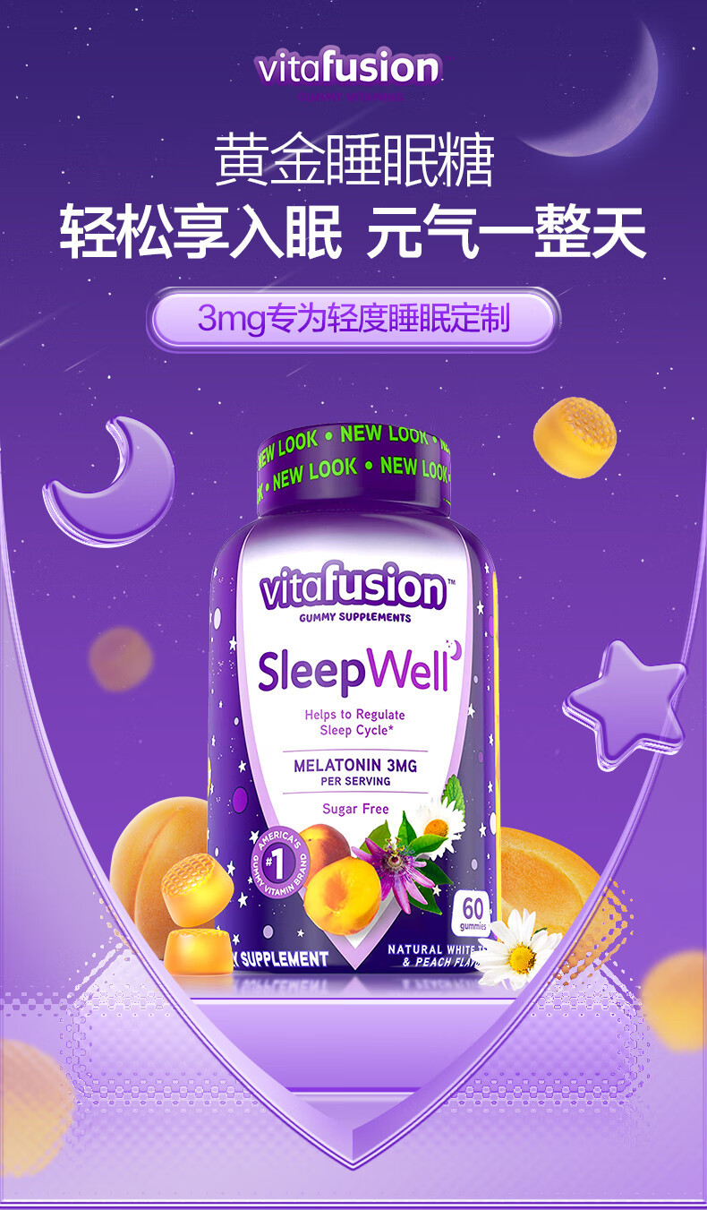 アメリカの原瓶vitafusion sleep wellメラトニンのグミ睡眠糖は60粒の代理で寝ます。
