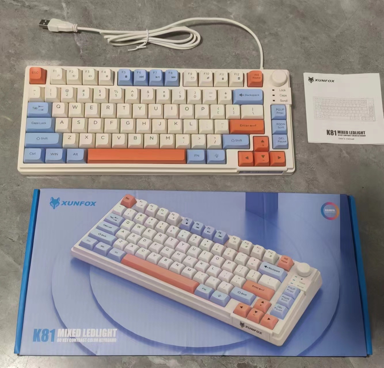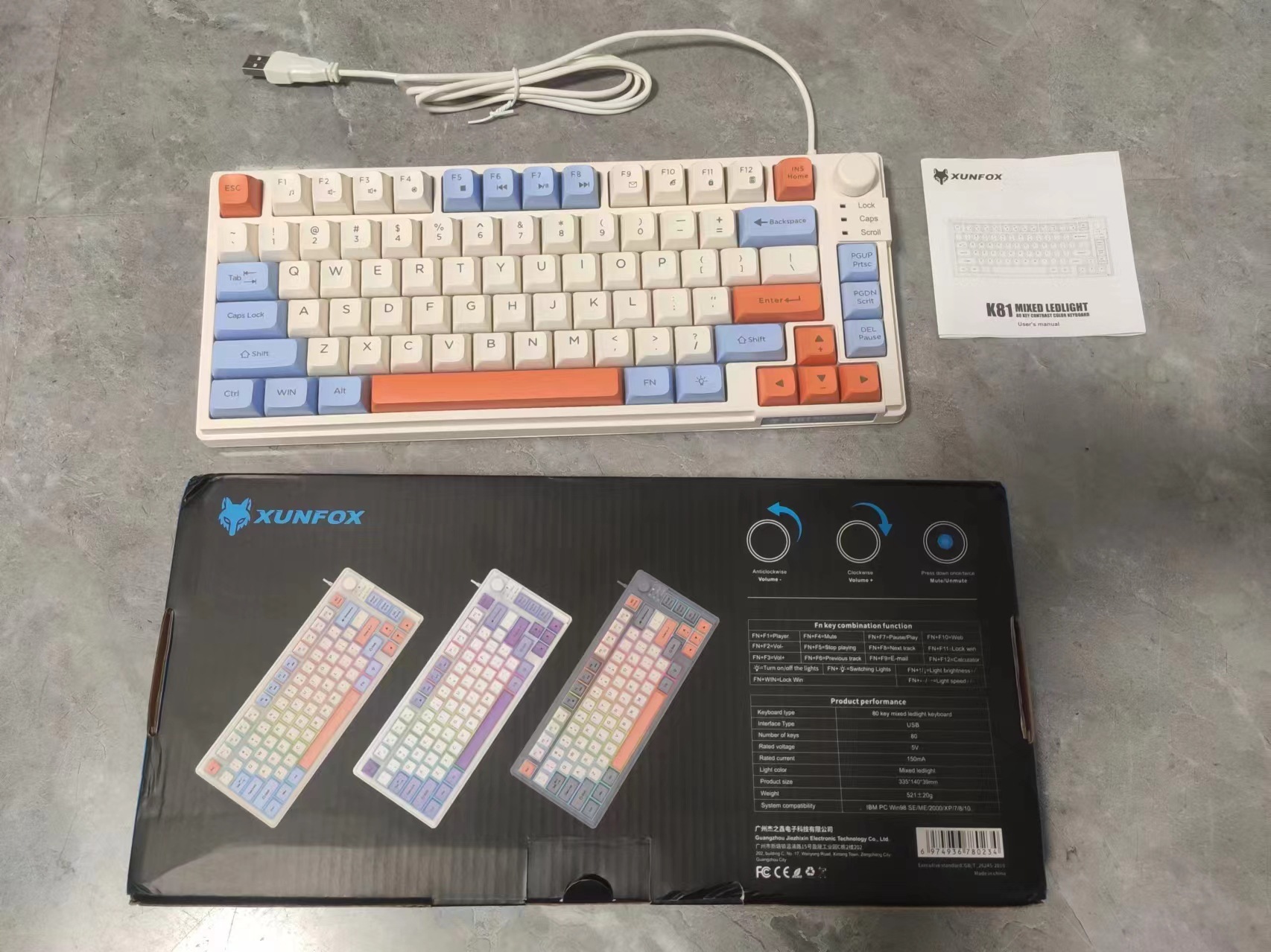 炫银狐K81三拼色有线USB薄膜键盘