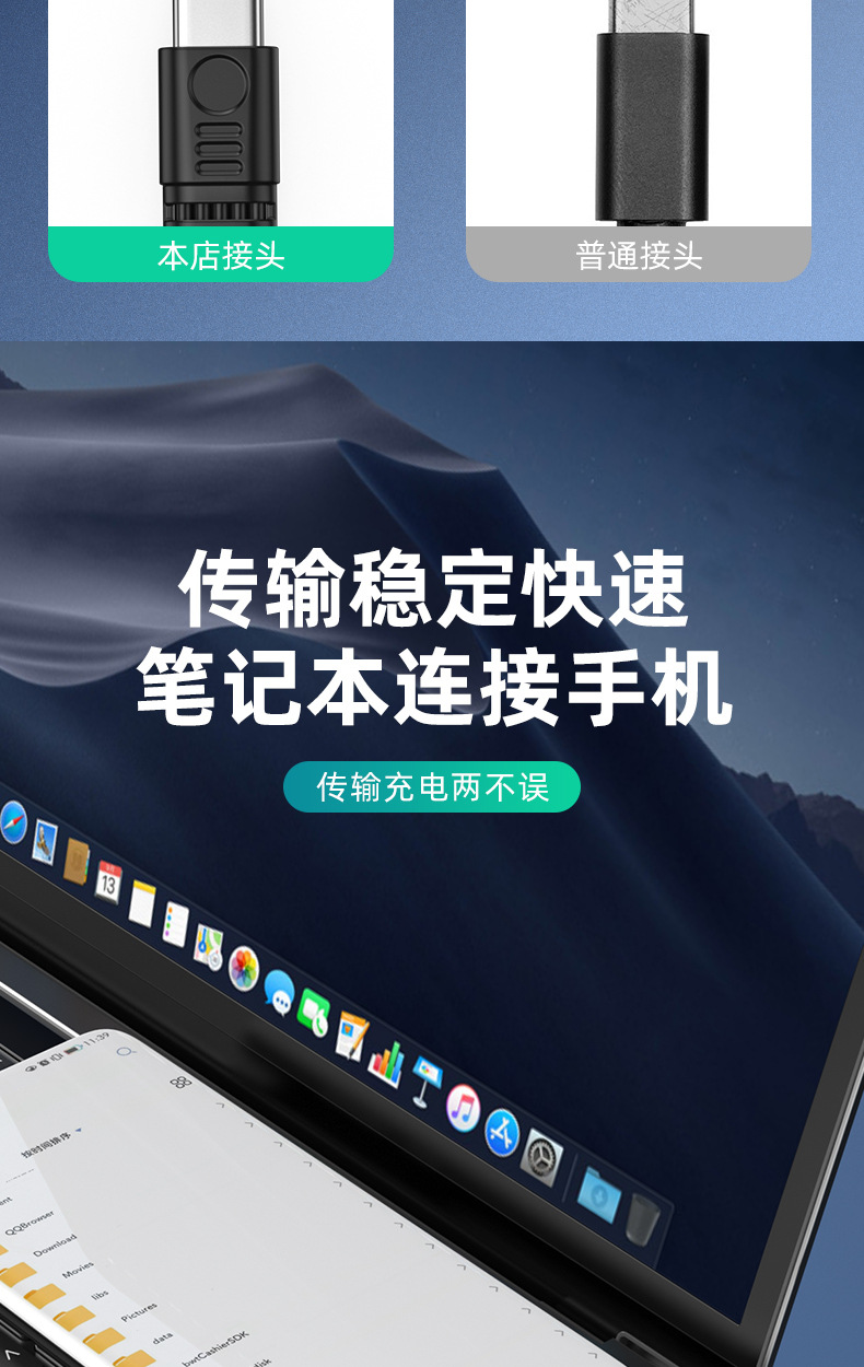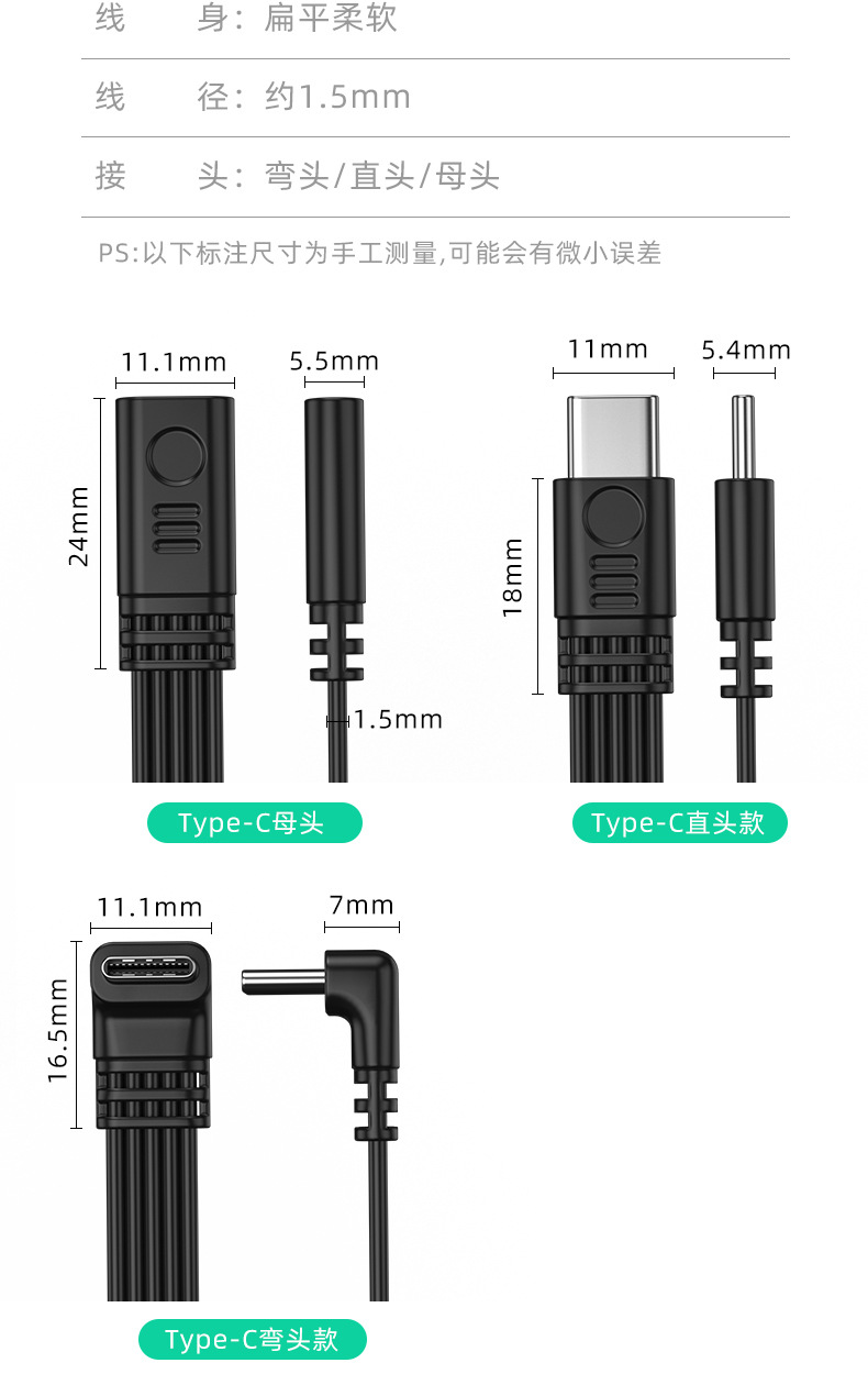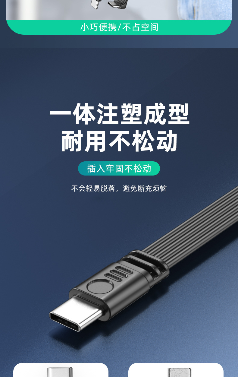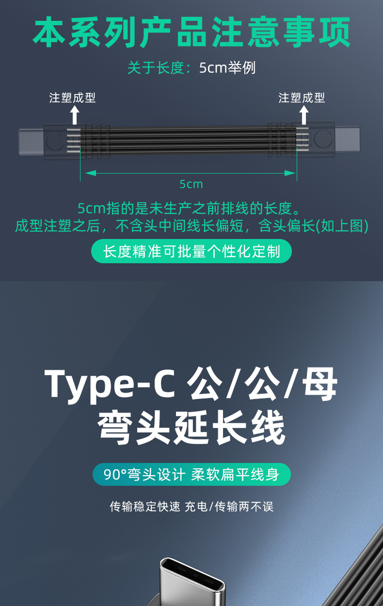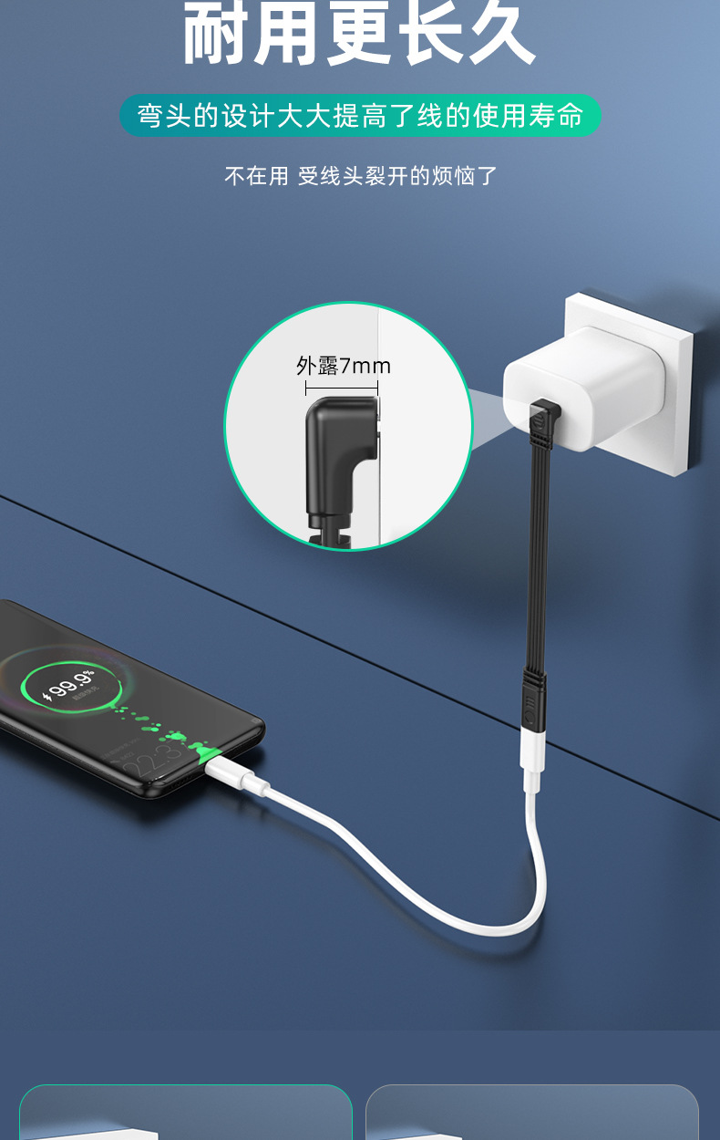 デュアルType-Cフラットシリコンケーブル デジタルアクセサリー 延長ケーブル データ転送 PD急速充電 エルボケーブル Type-C 車載用