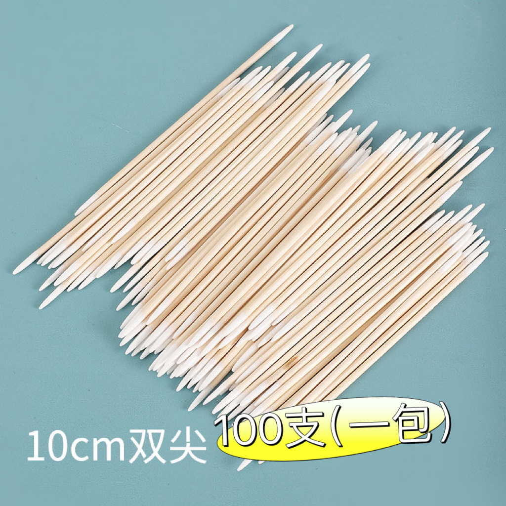 100本のネイルアートの超細い先端の綿棒の木質は一度に糊の甲溝の隙間に行って綿棒の道具をきれいにします。