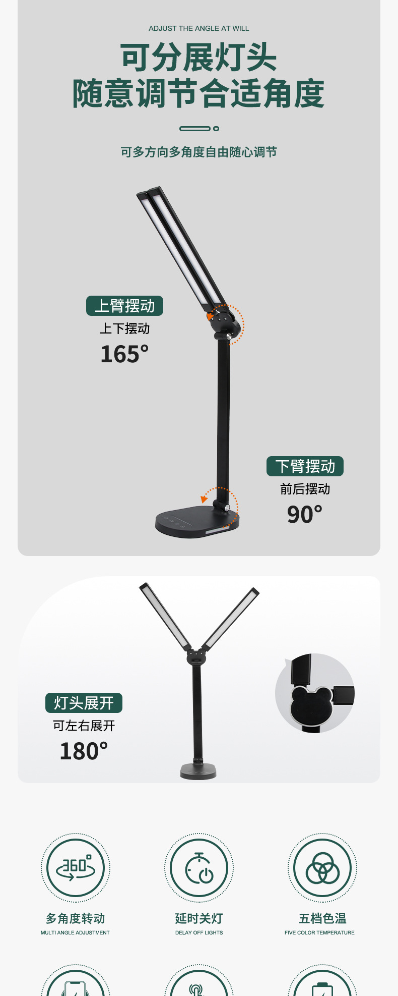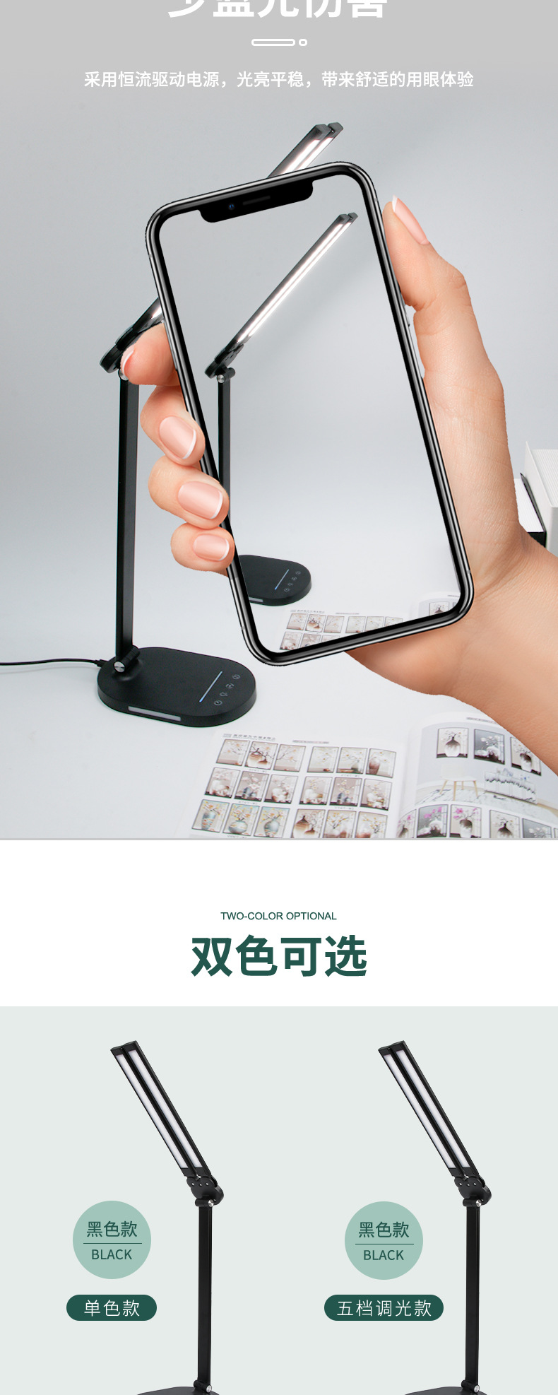 人気のソース双頭デスクランプ折りたたみスマート充電ワイヤレス充電学習読書デスクランプピアノ目の保護デスクランプ