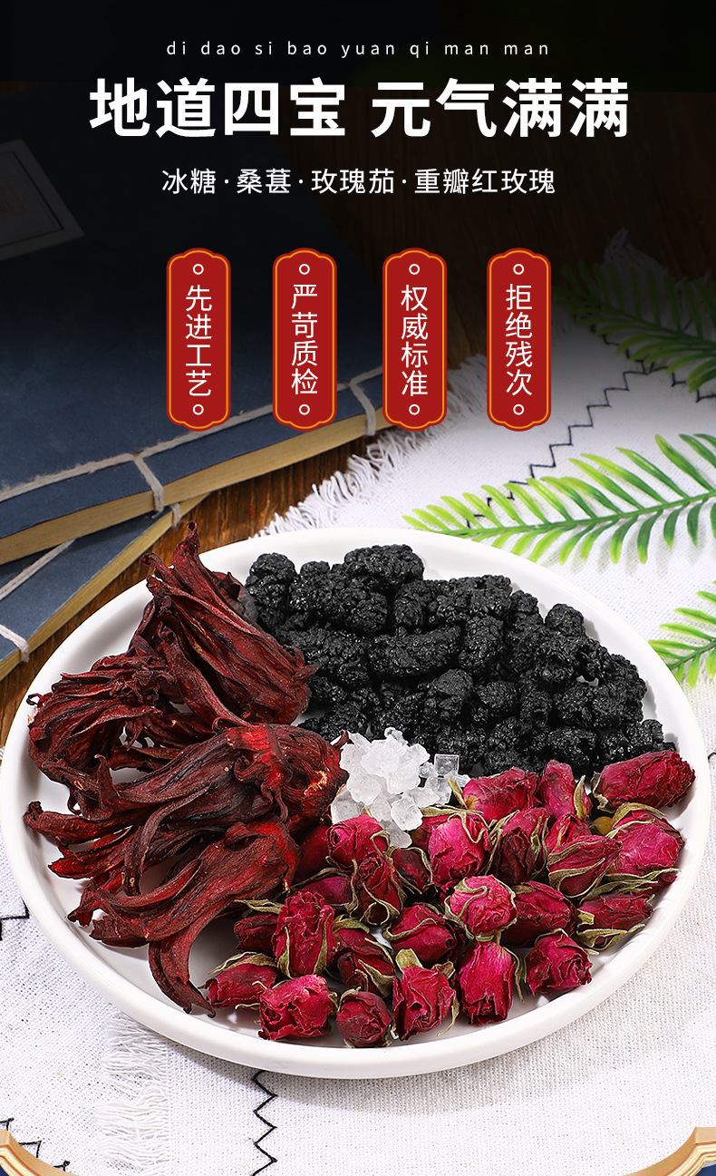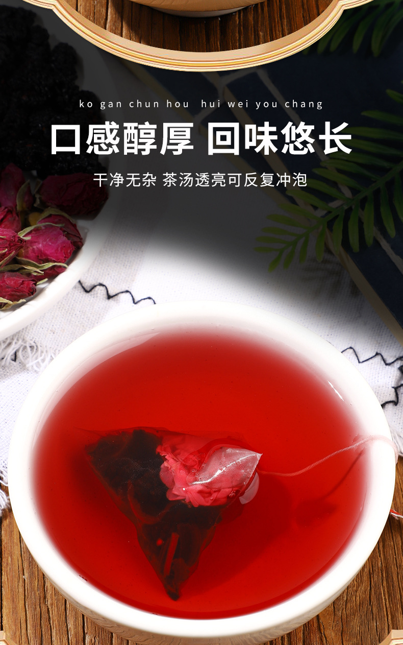 桑の実のバラの洛神の花茶の女神のすっぴんのお茶は水を浸して飲む飲み物のバラのお茶の夏の甘酸っぱい果物のお茶