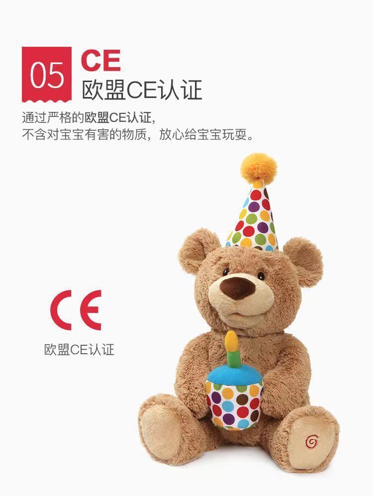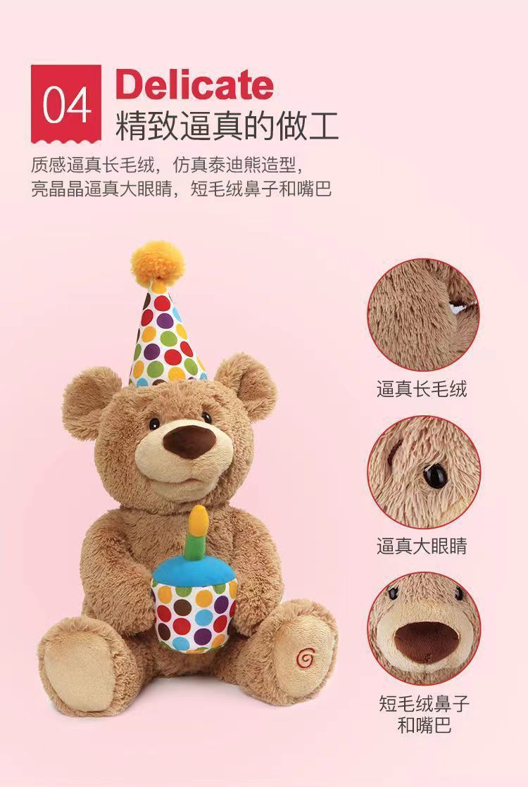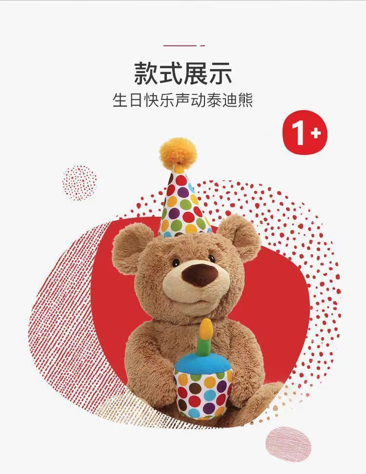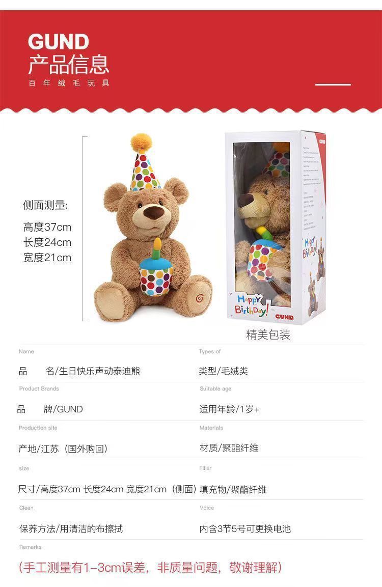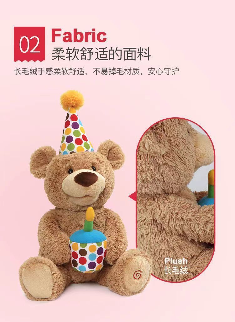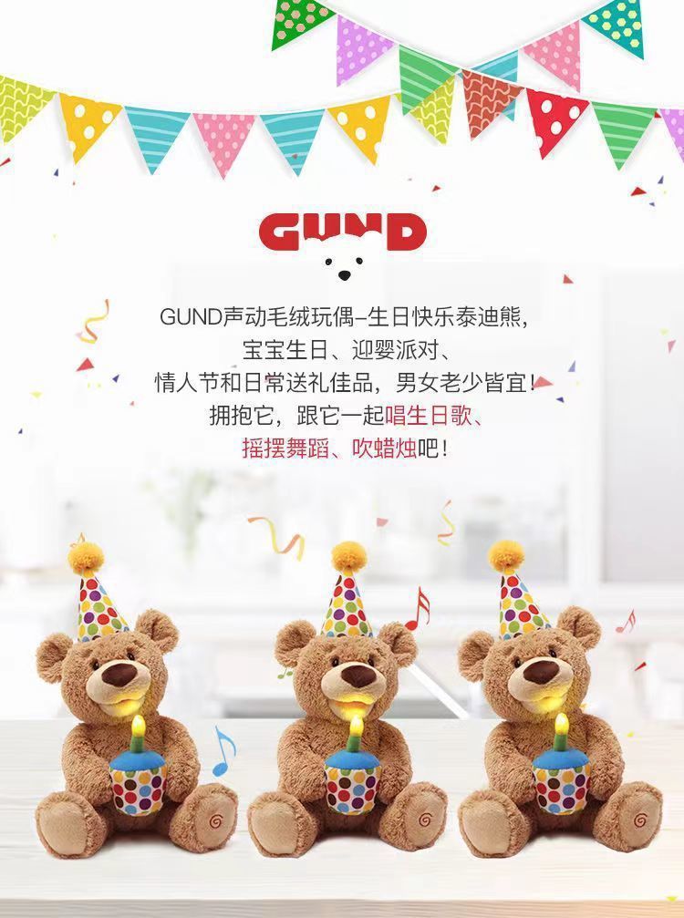 アメリカのbaby gundの誕生日熊熊の誕生日おめでとう歌はろうそくを吹いて赤ちゃんの子供のぬいぐるみをなだめる
