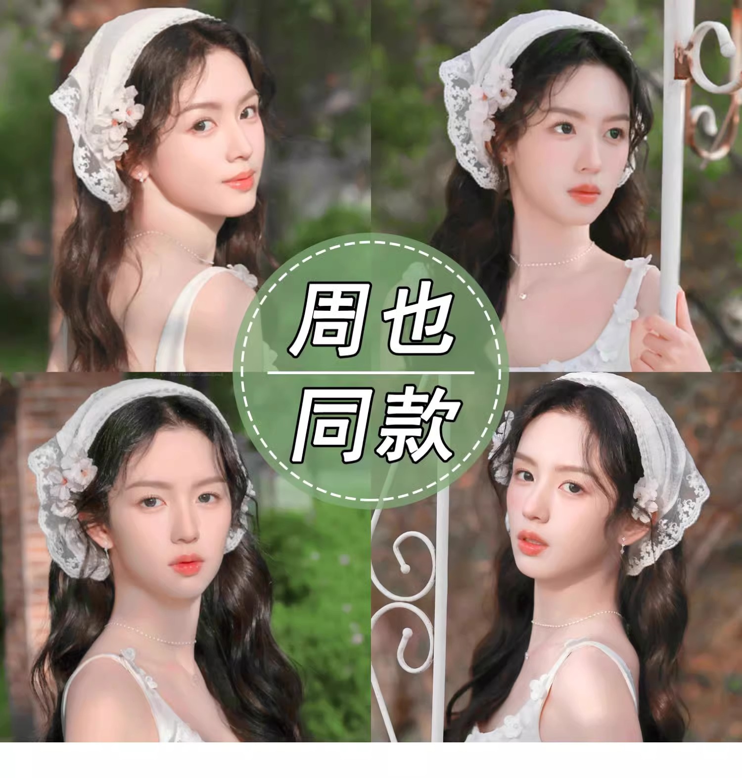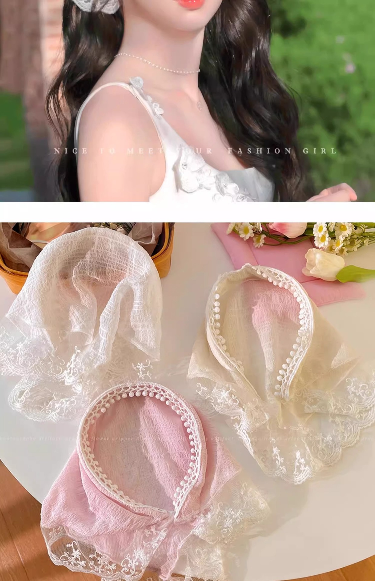 白いレースのカチューシャの頭巾一体フランスの三角巾の頭の髪飾りのスカーフの帽子の田園風の海辺の頭飾りの女性