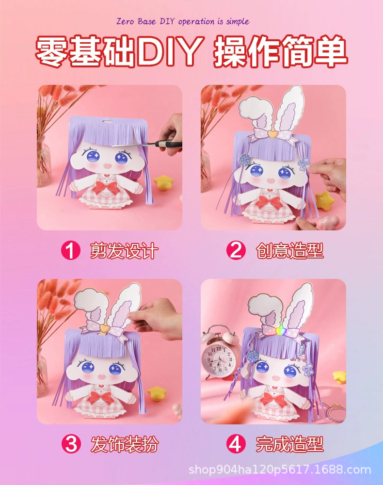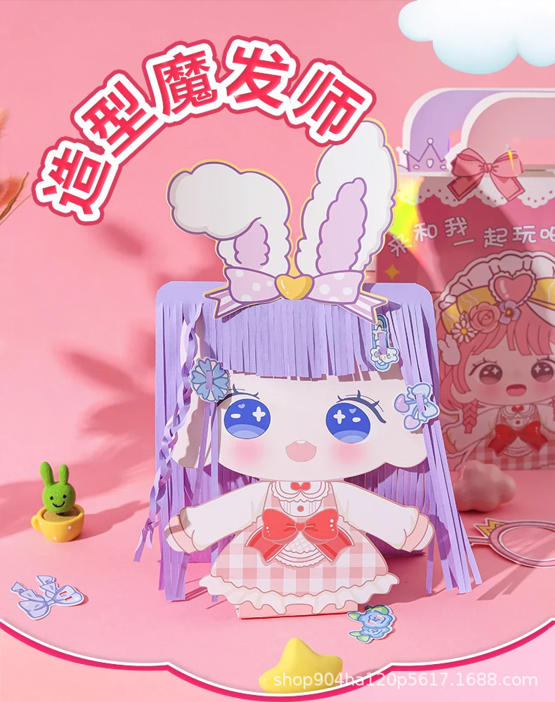 形の魔髪師の静かな本のステッカーの子供の理髪師の手作りのdiyカット紙の女の子の髪飾りセットのおもちゃ