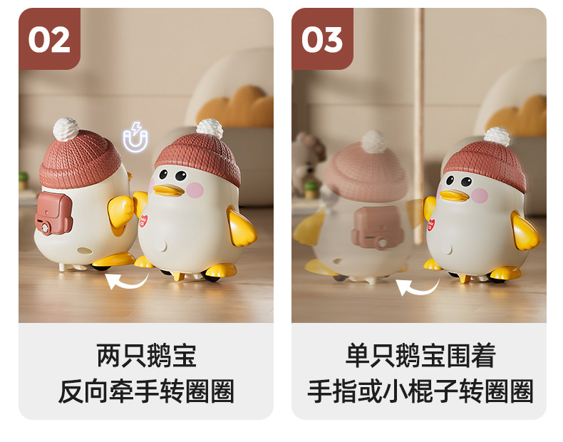 汇楽はガチョウの二世代の赤ちゃんのおもちゃを揺らします。