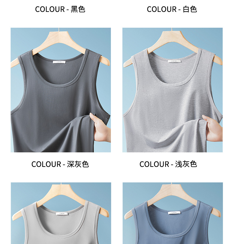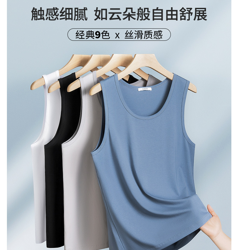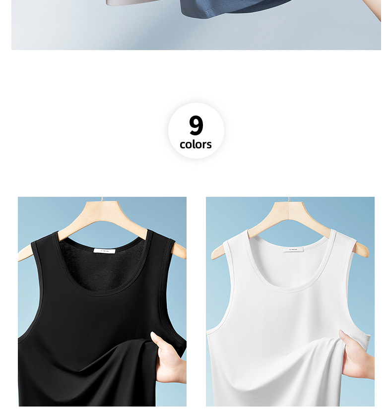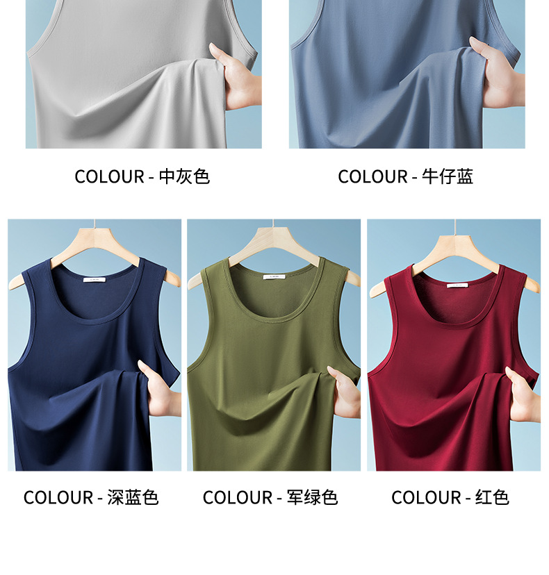 【60s蘭精モーデール】高級夏男性ベスト薄い氷糸無痕純色インナーノースリーブtシャツ