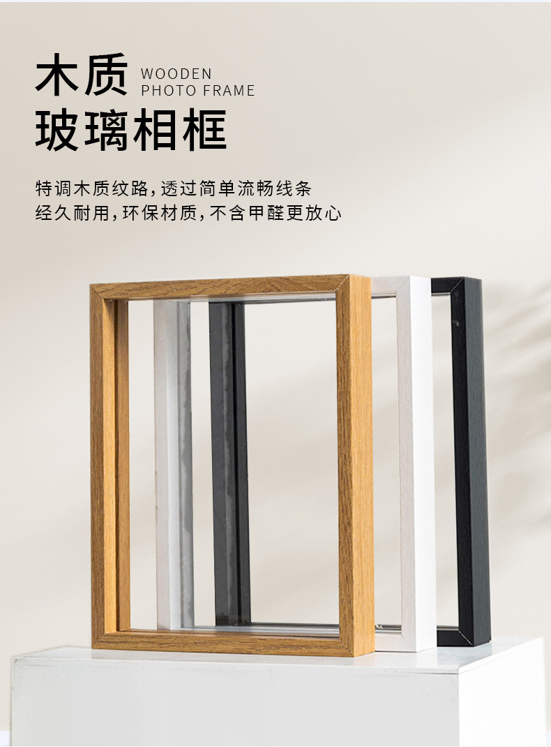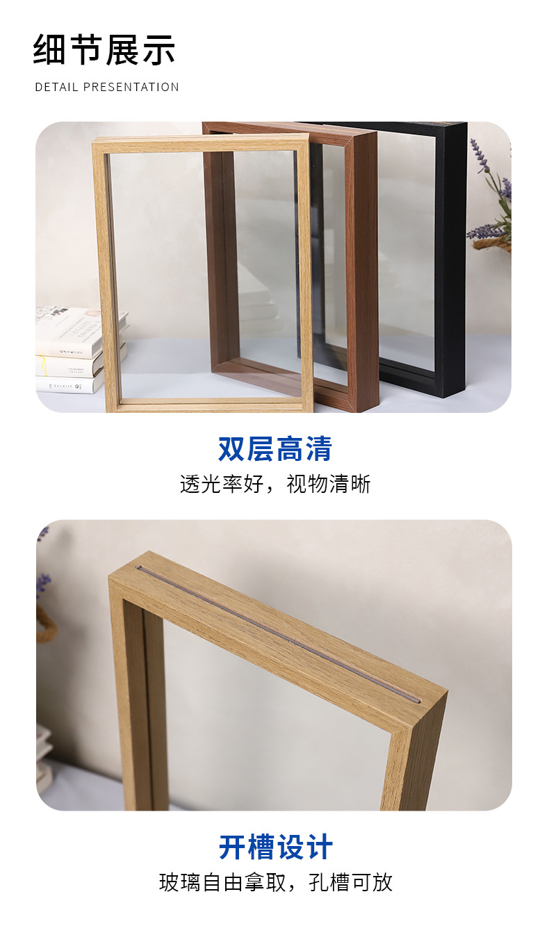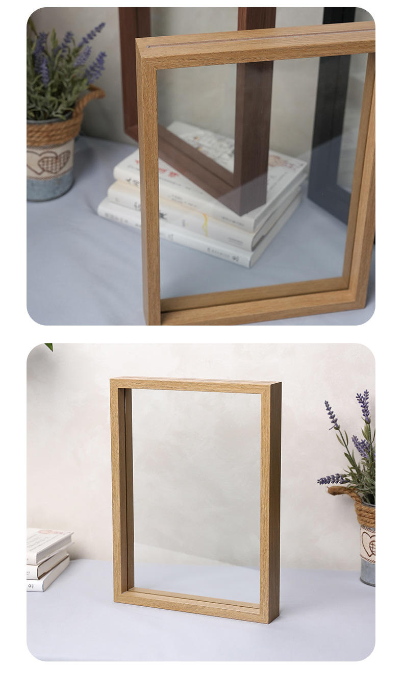クリエイティブな手作りフォトフレーム、両面ガラスミラーフレーム、木製ドライフラワー二層標本写真木製フォトフレーム、透明額縁
