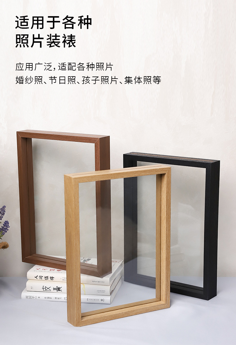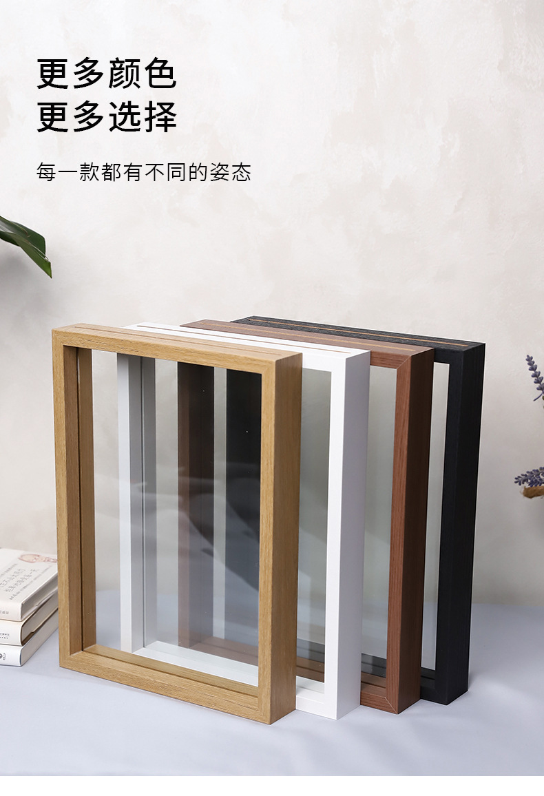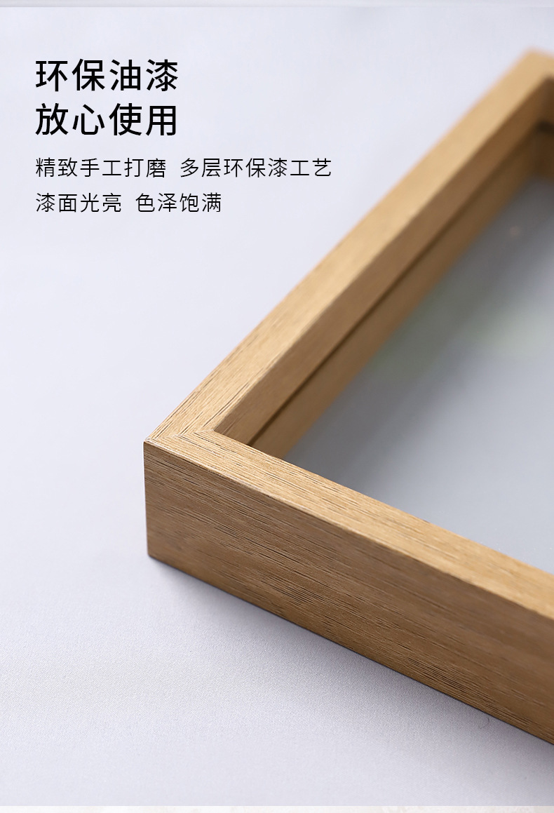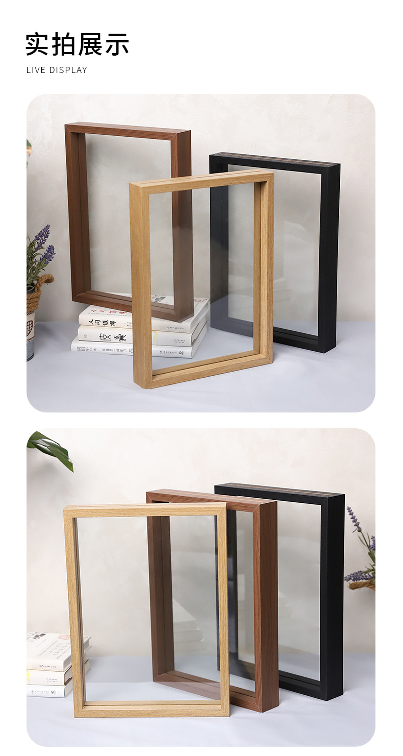 クリエイティブな手作りフォトフレーム、両面ガラスミラーフレーム、木製ドライフラワー二層標本写真木製フォトフレーム、透明額縁