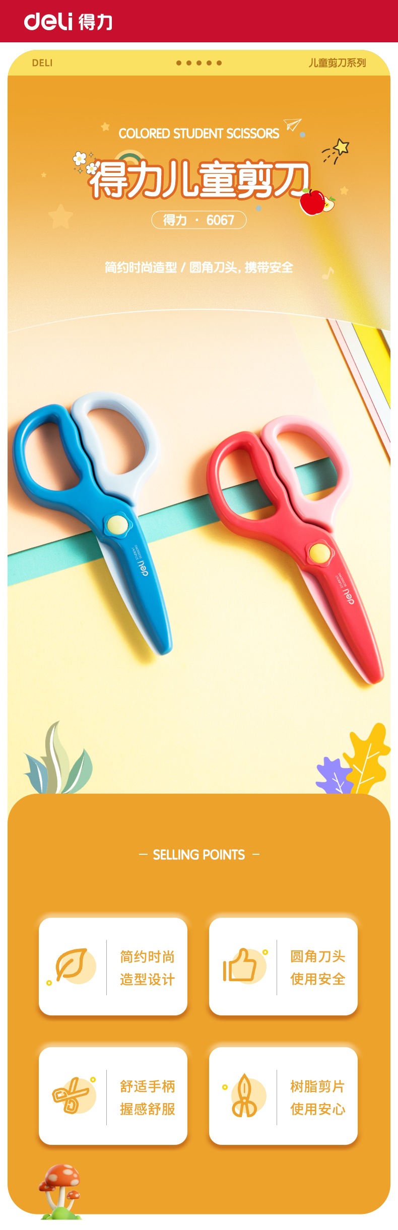 6067児童ハサミ全プラスチック安全手作りハサミ幼児diyカットナイフ丸頭は手を傷つけない