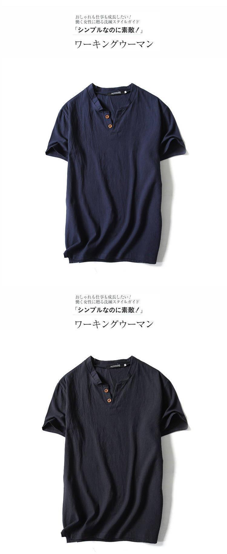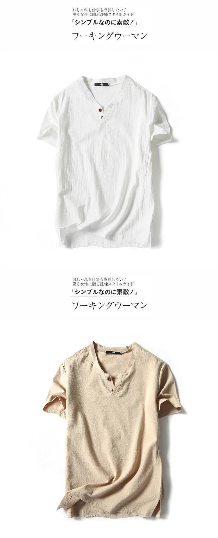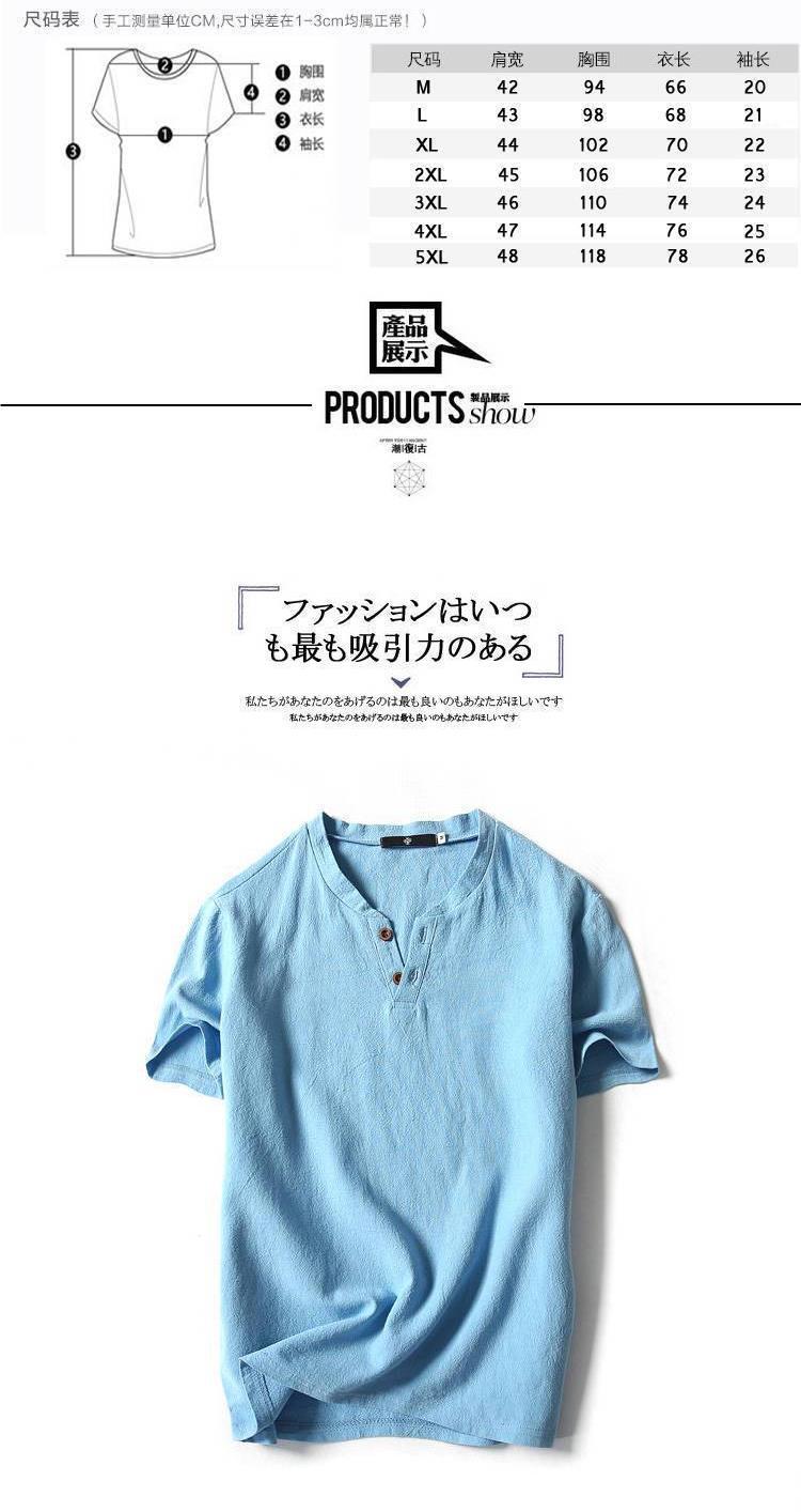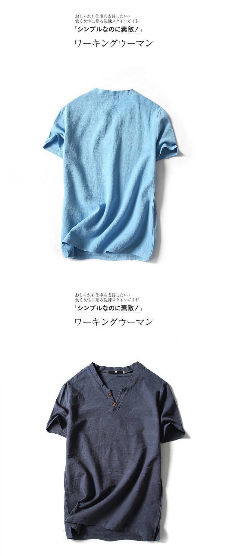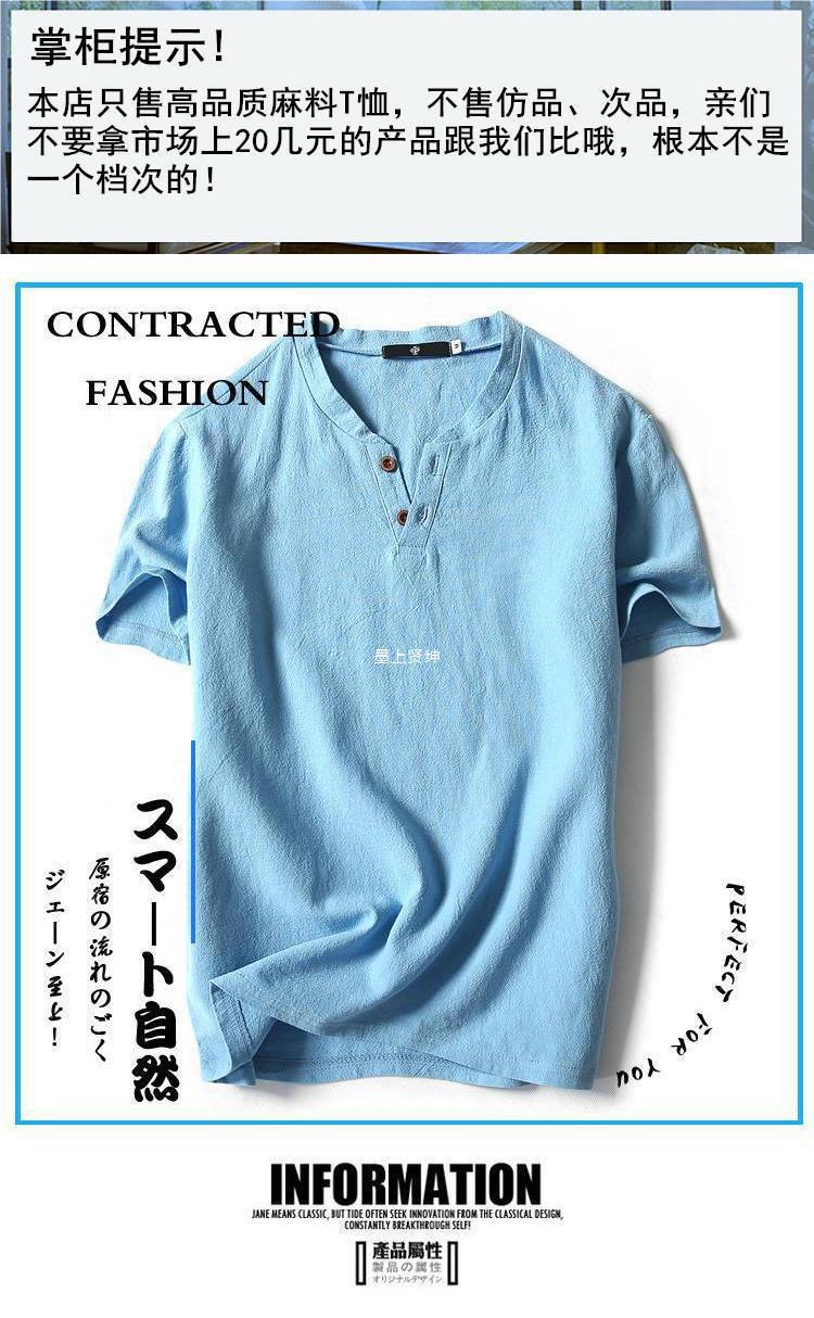 中国風亜麻tシャツ男性半袖夏純色綿麻半袖vネックシャツ中国式男性服百合上着