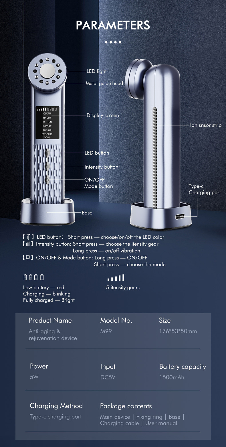 M99七モード超音波氷敷美容機器EMSプルアップ加熱カラー光振動マッサージガイド