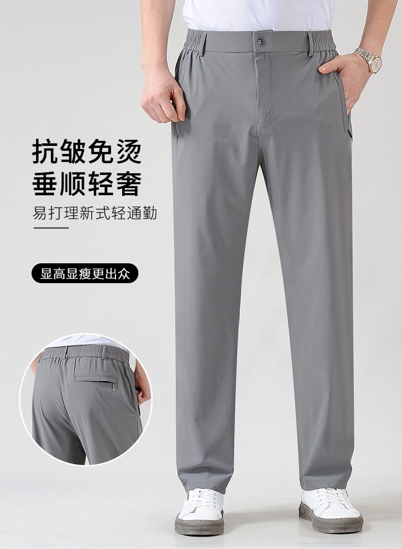 メンズカジュアルパンツ、中高年パパパンツ、ストレッチアイスシルクパンツ