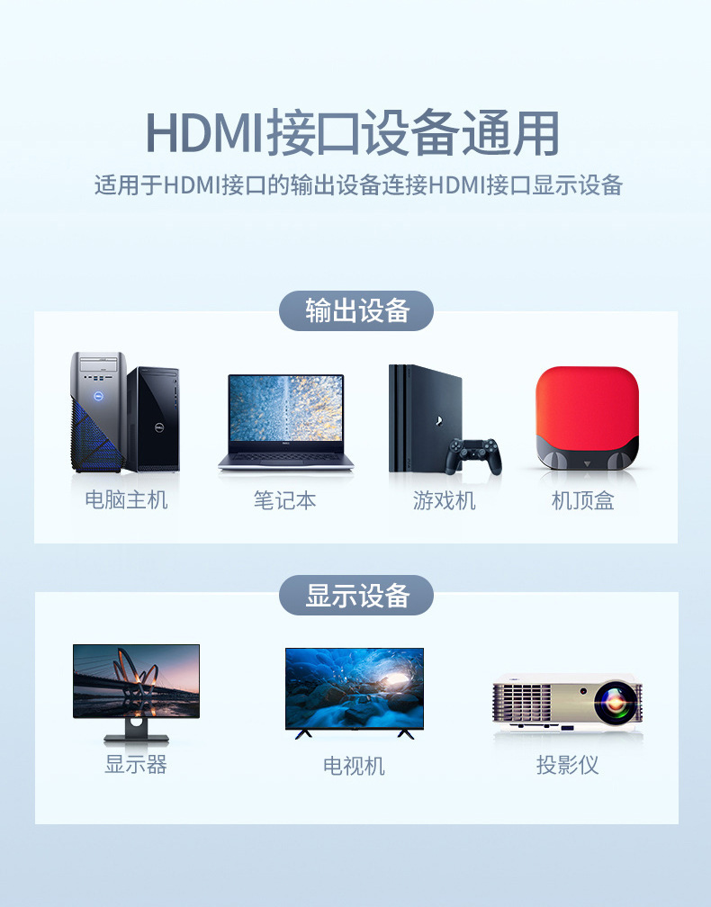 ●HDMI切换器只需切换信号,没有外接电源,输入设备必须有电流输入才能正常工作。 (大多数带HDMI接口的播放设备都连接外接电源,HDMI输出接口会有电流)。