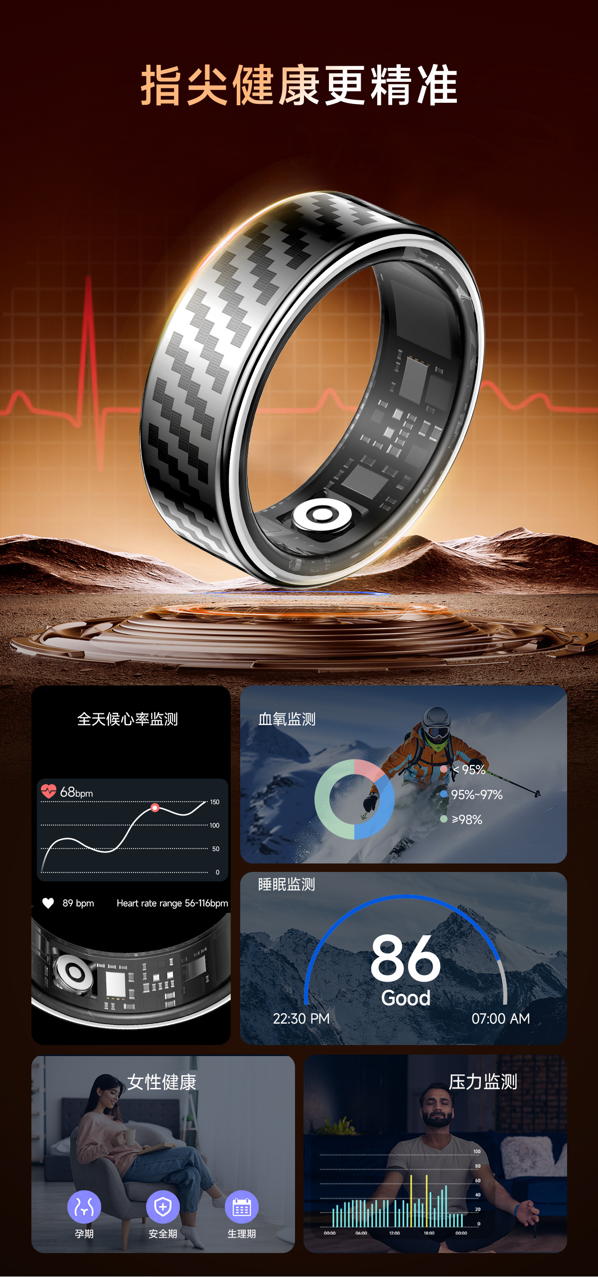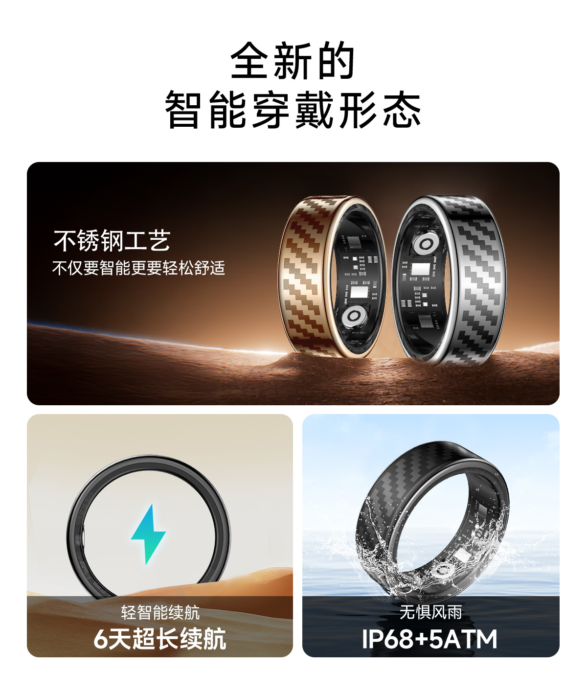 30+款式,智能戒指可选择材质有 不锈钢、铝合金、陶瓷、钛合金、黄金、越南沙金、镶钻、碳纤维