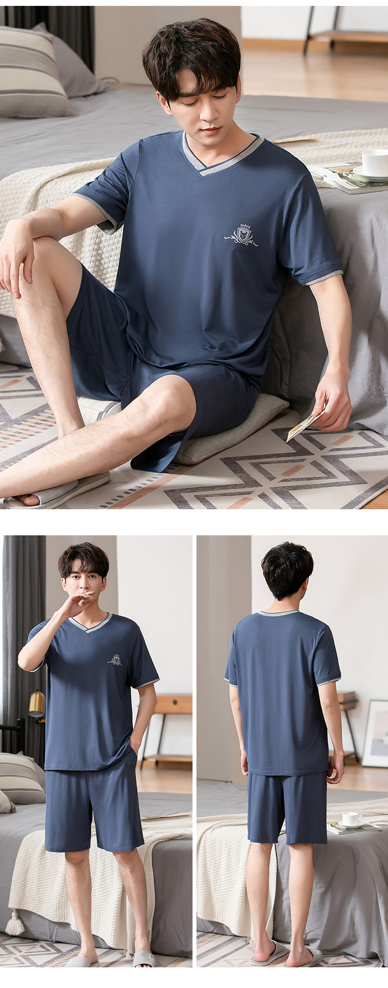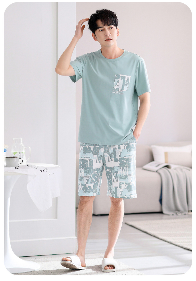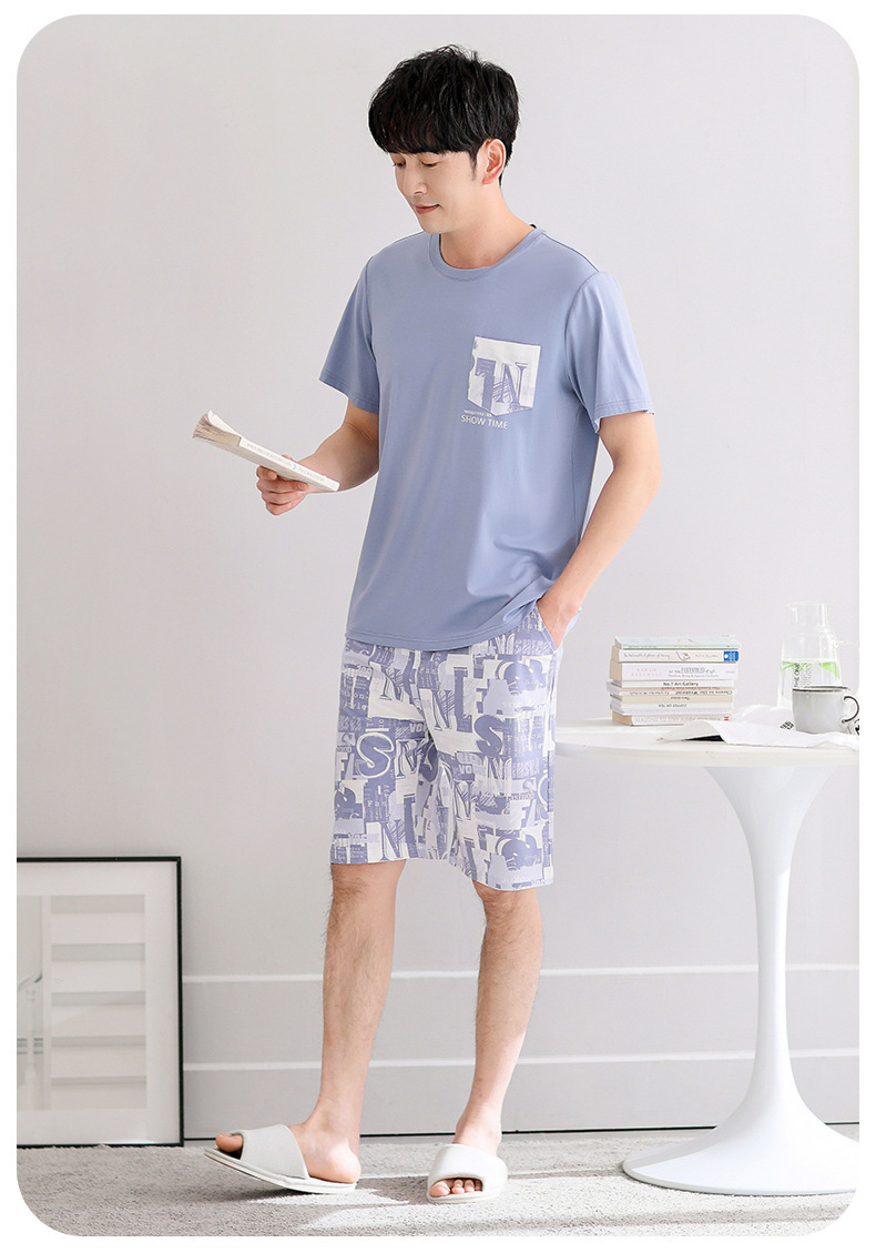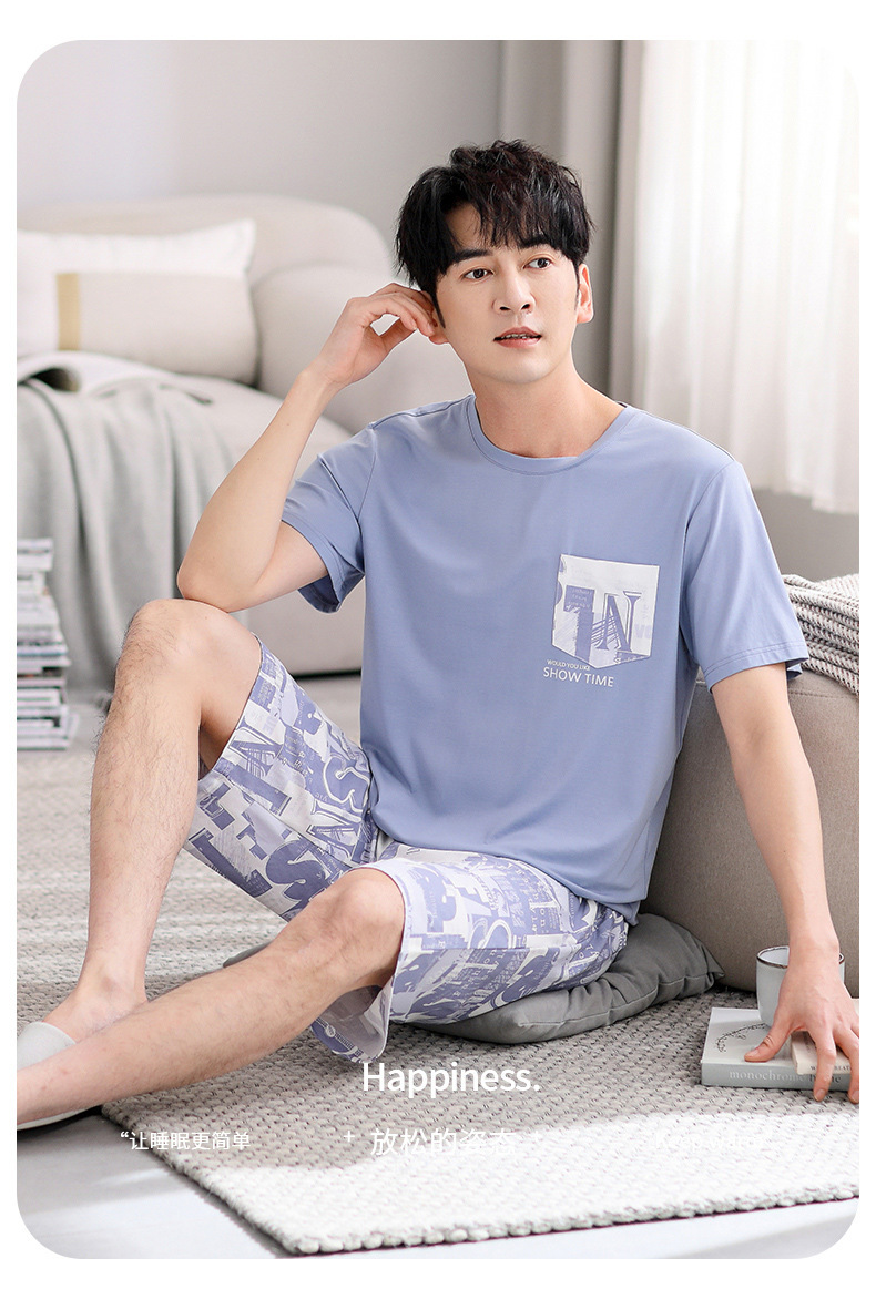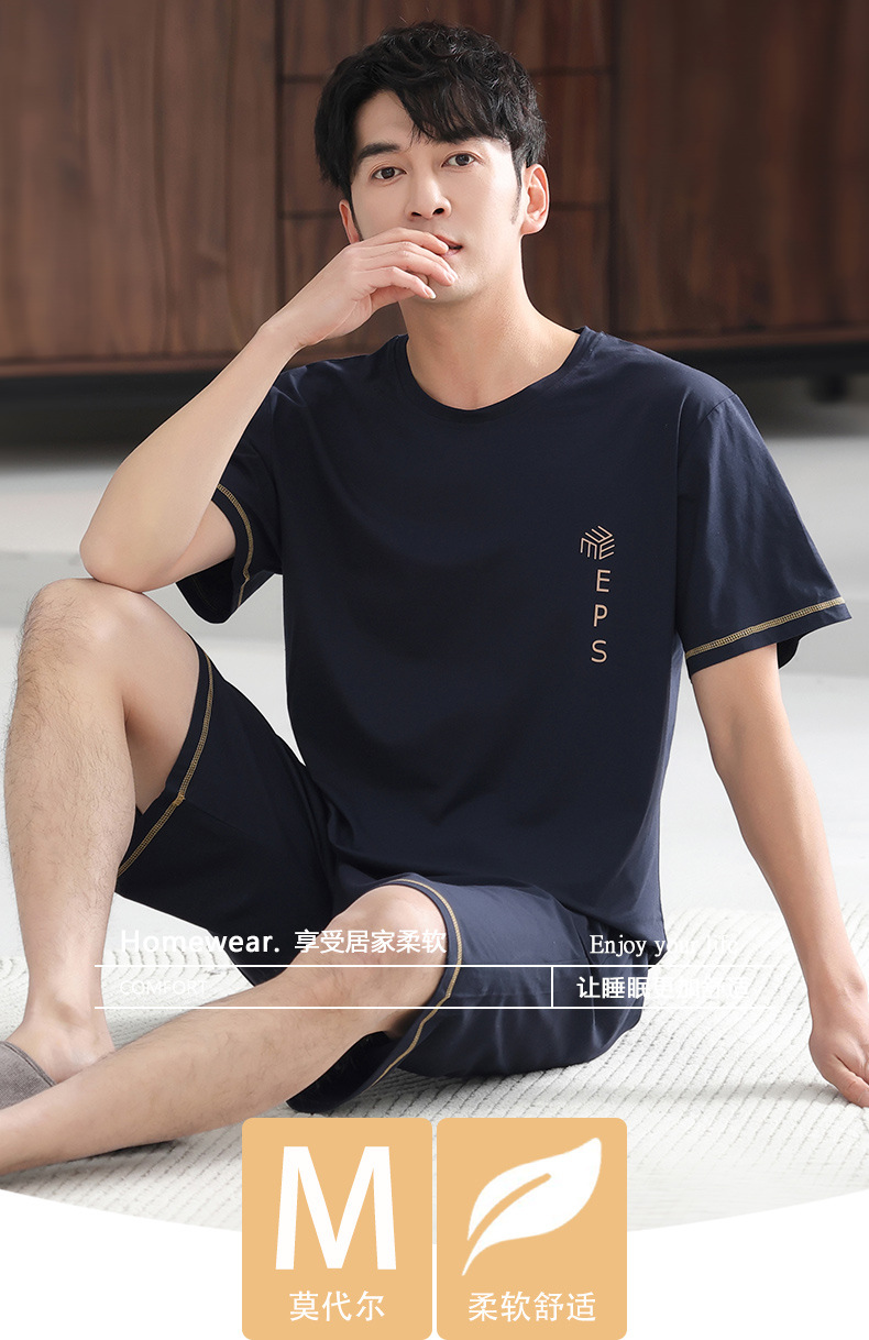 男性パジャマ夏の薄いモデルのモーダル綿の半袖半ズボン男性の家庭服夏の太ったスーツ