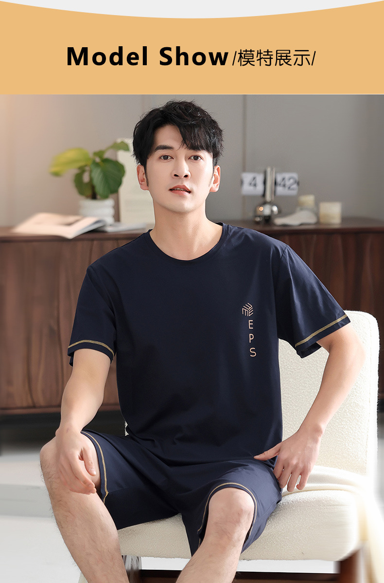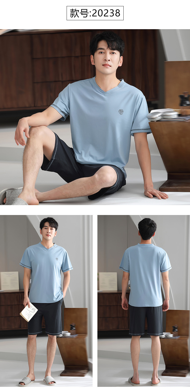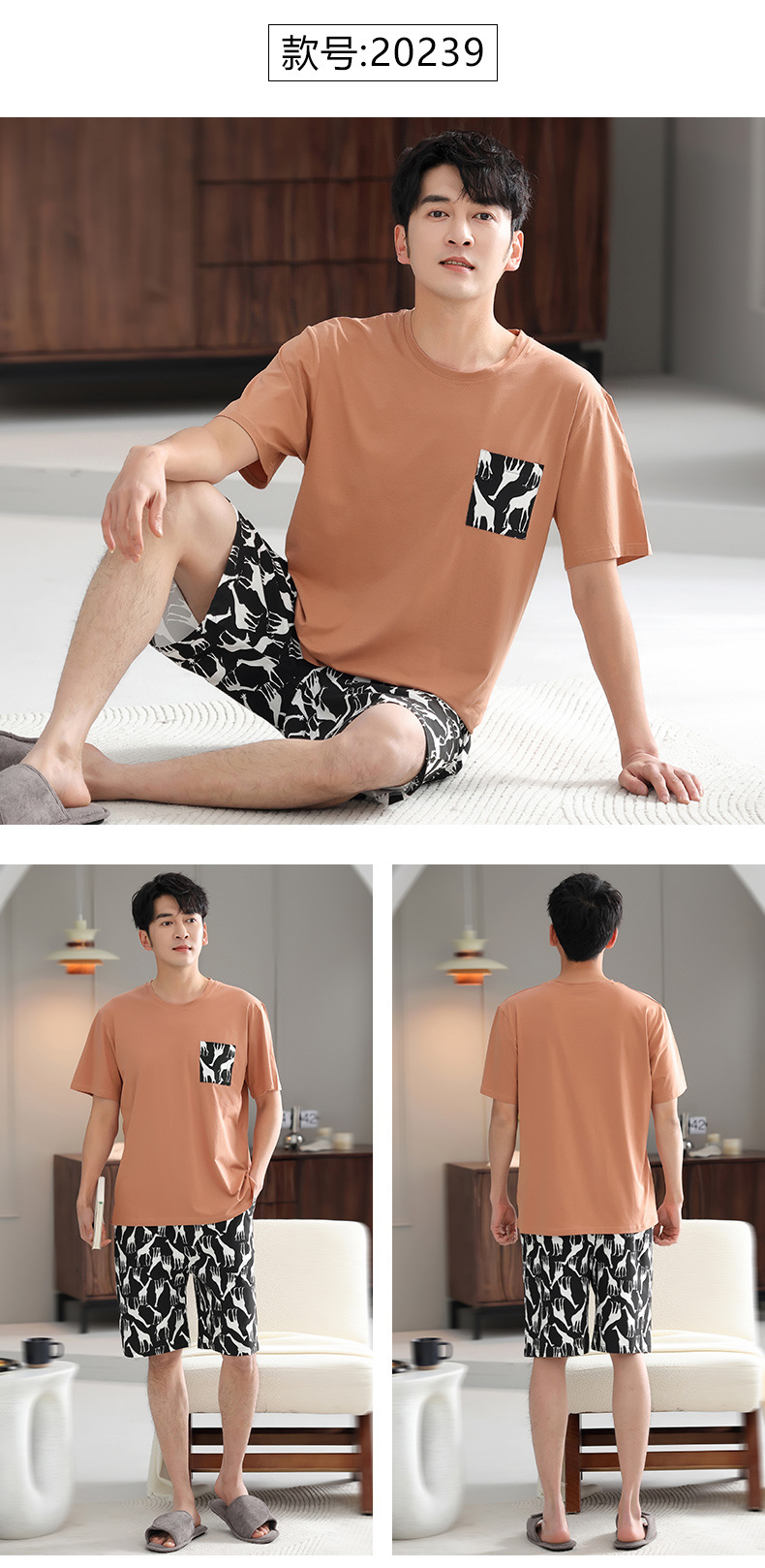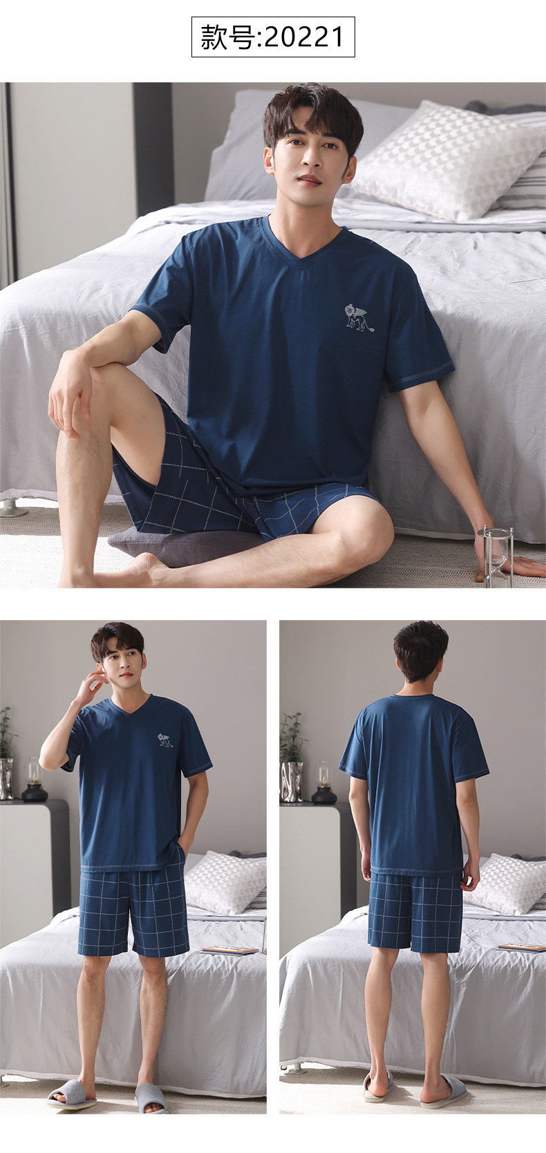 男性パジャマ夏の薄いモデルのモーダル綿の半袖半ズボン男性の家庭服夏の太ったスーツ