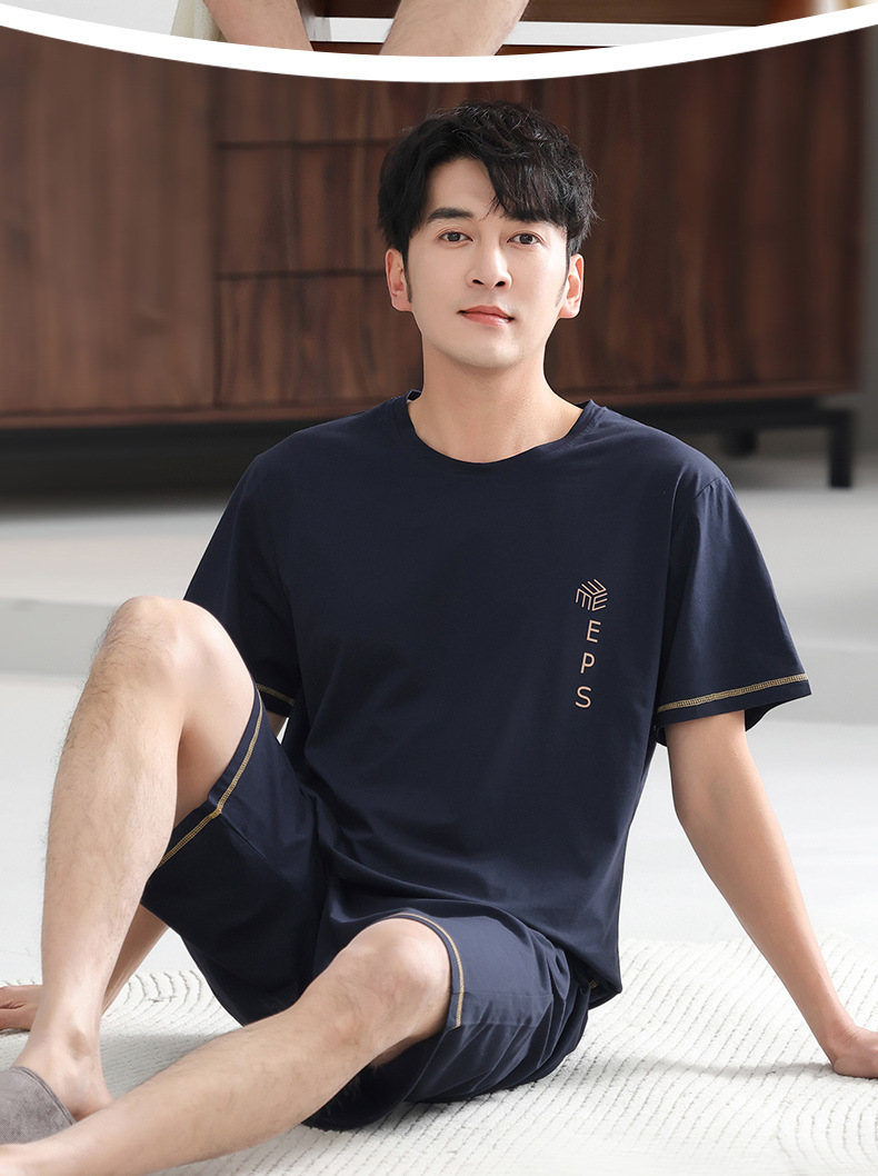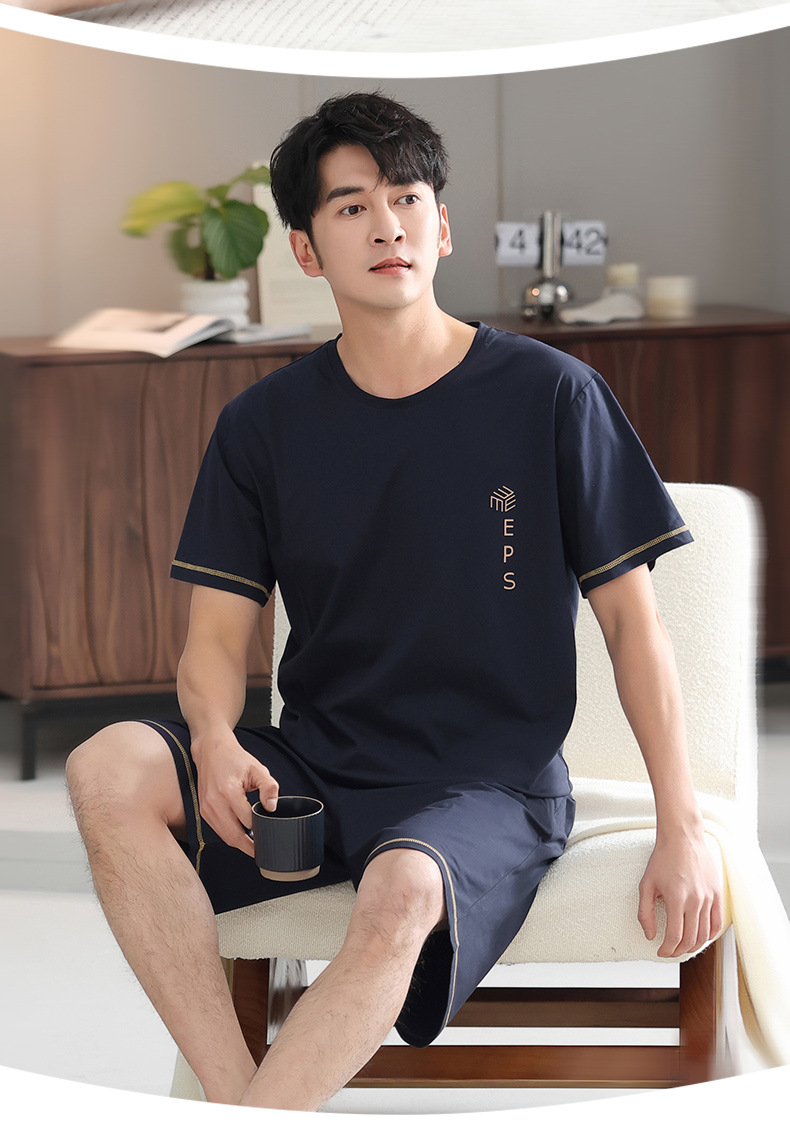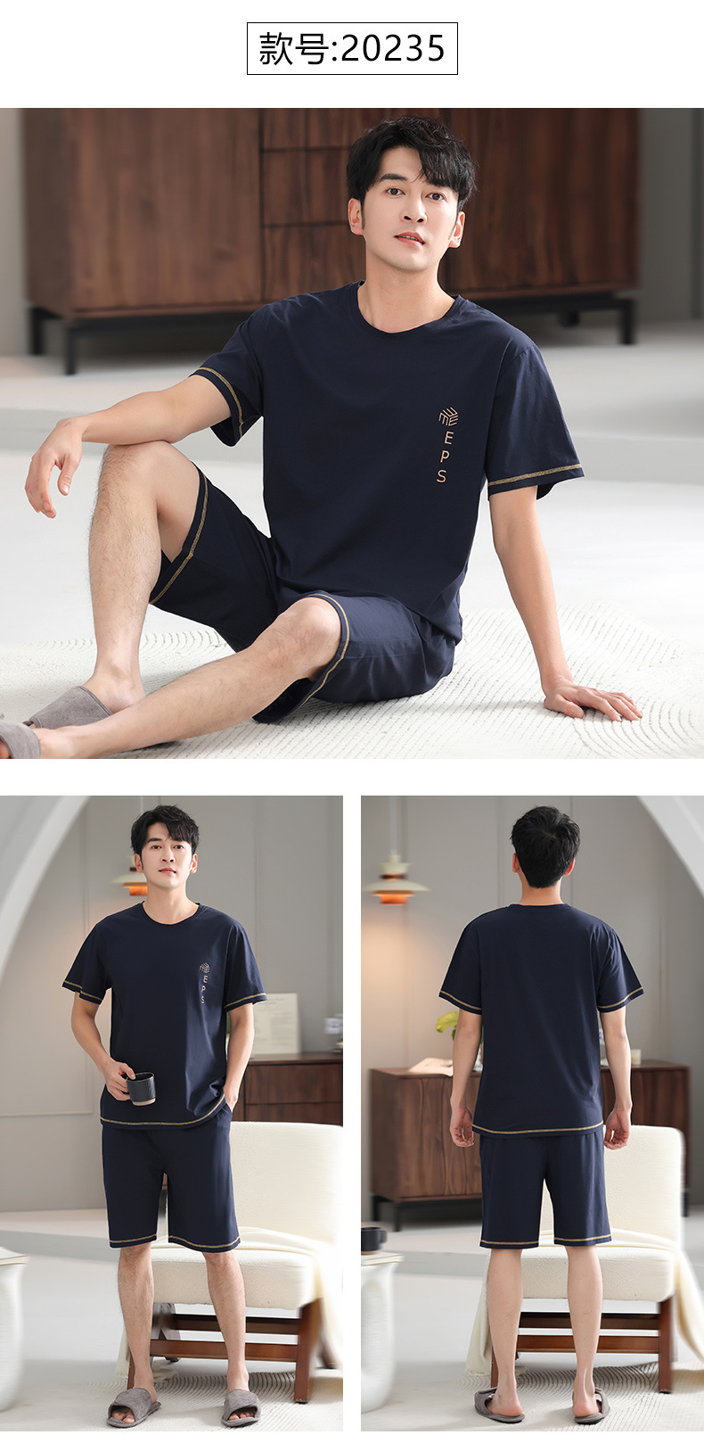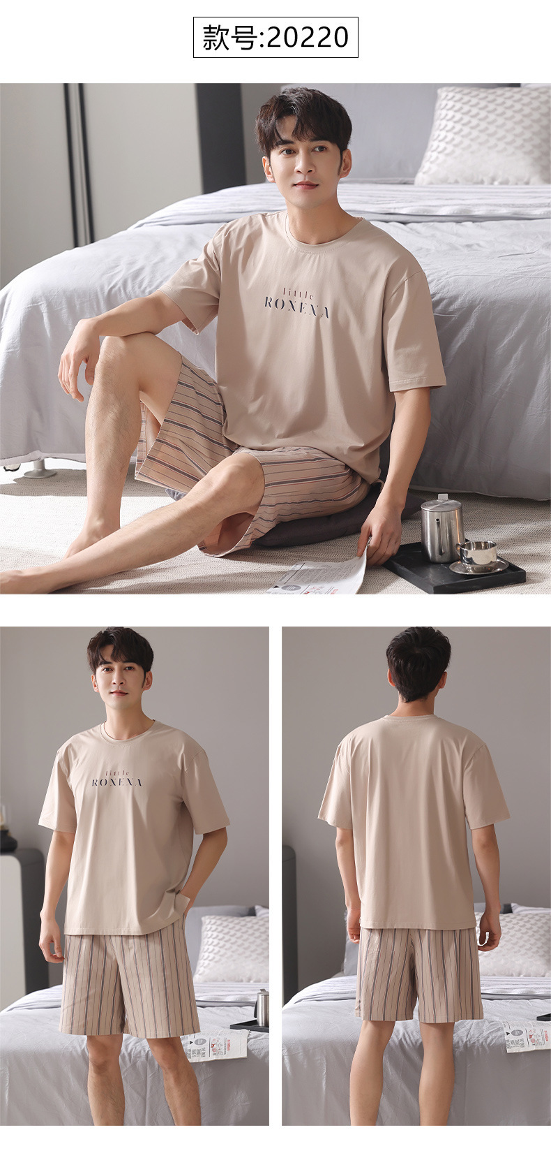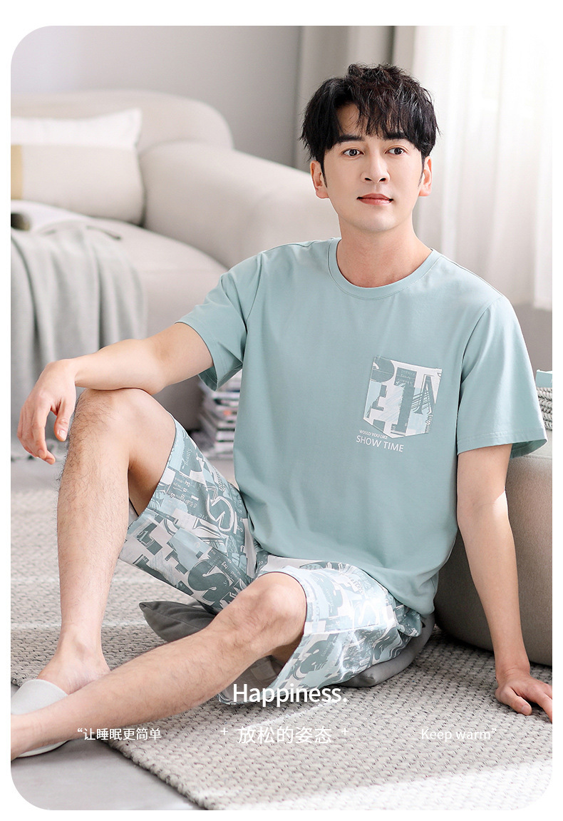 男性パジャマ夏の薄いモデルのモーダル綿の半袖半ズボン男性の家庭服夏の太ったスーツ