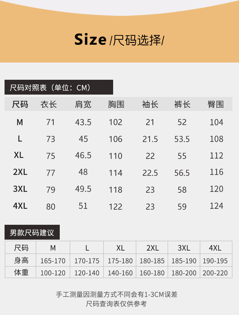 Mは100-120斤を提案する,Lは120-140斤を提案する,Xlは140-160斤を提案した,2xlは160-180斤を提案する,3xlは180-200斤を提案する,4xlは200-220斤を提案する