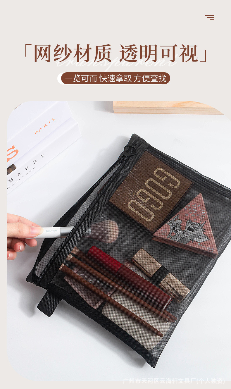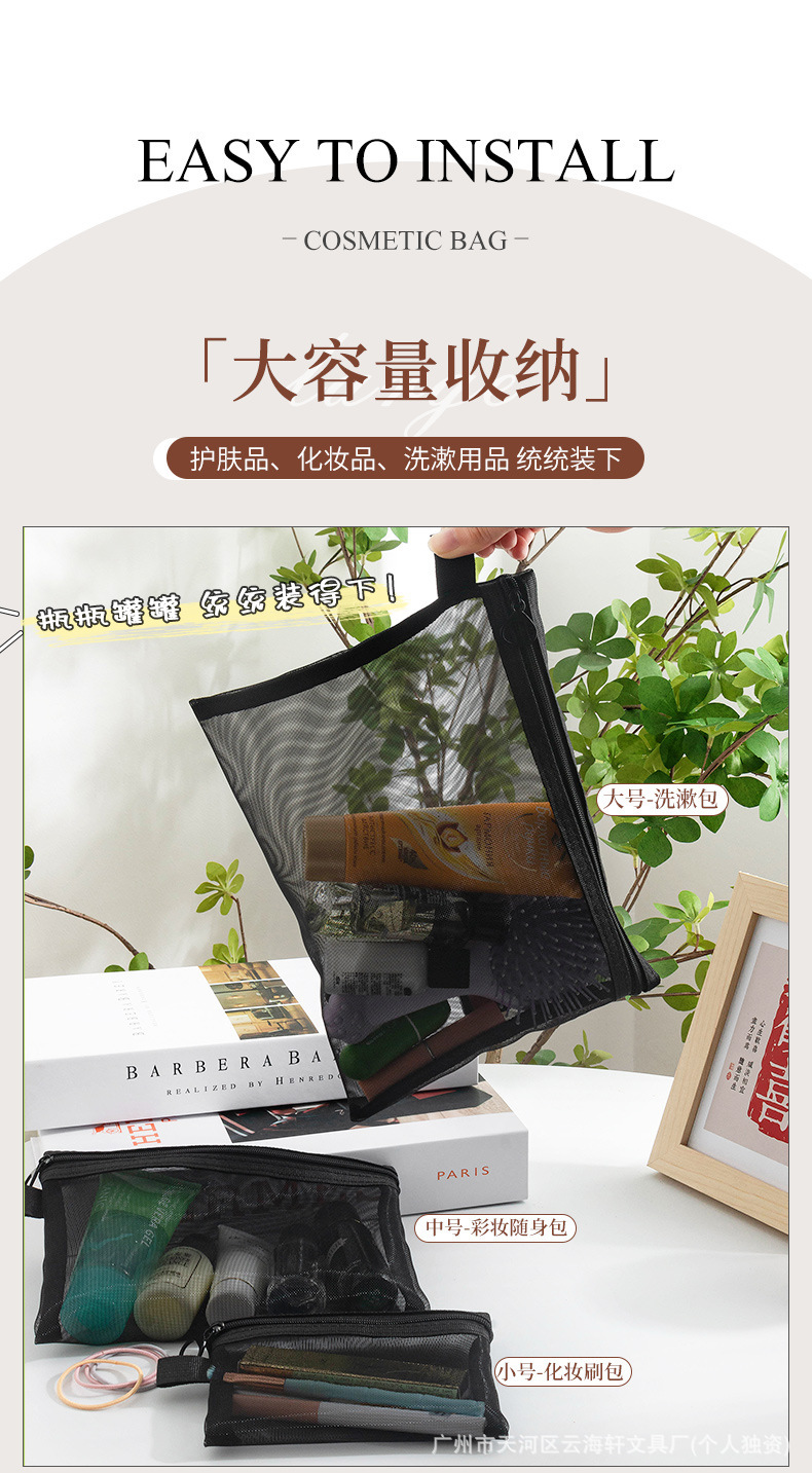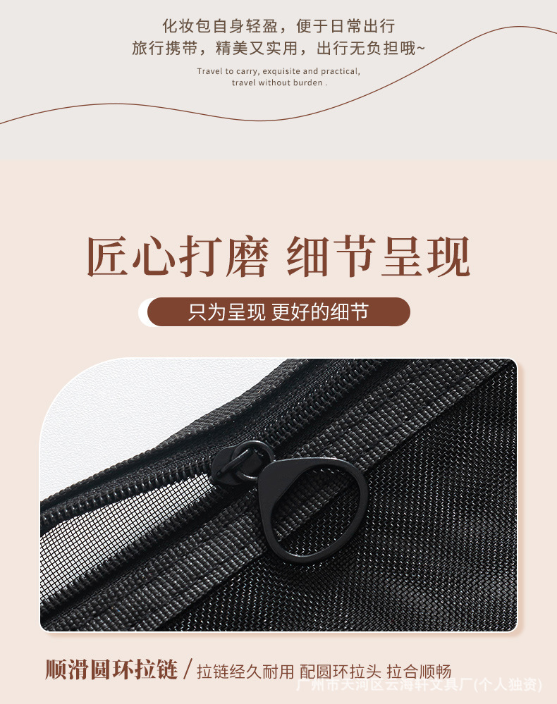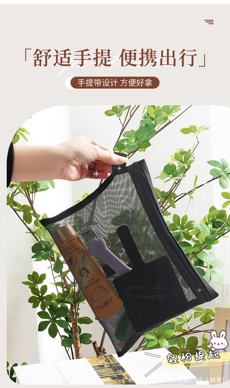 メーカー卸売り厚手ナイロン網糸化粧バッグ携帯旅行化粧品収納袋メッシュ洗面収納