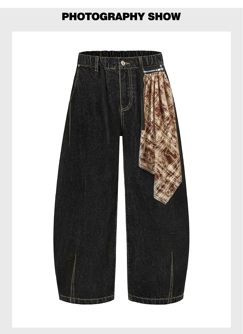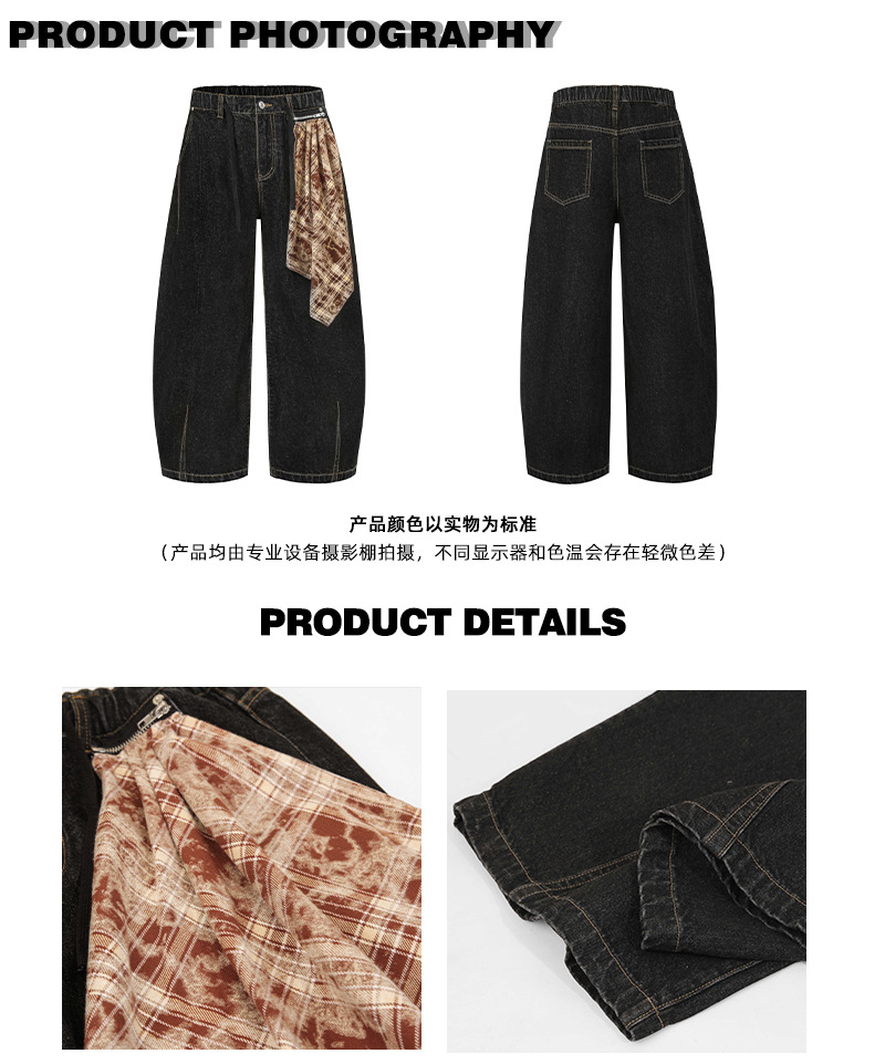 Baggyアメリカのレトロな曲がり角ナイフのデザインのジーパンの男女の潮のブランドの広い足のゆったりしているcleanfitズボンの夏