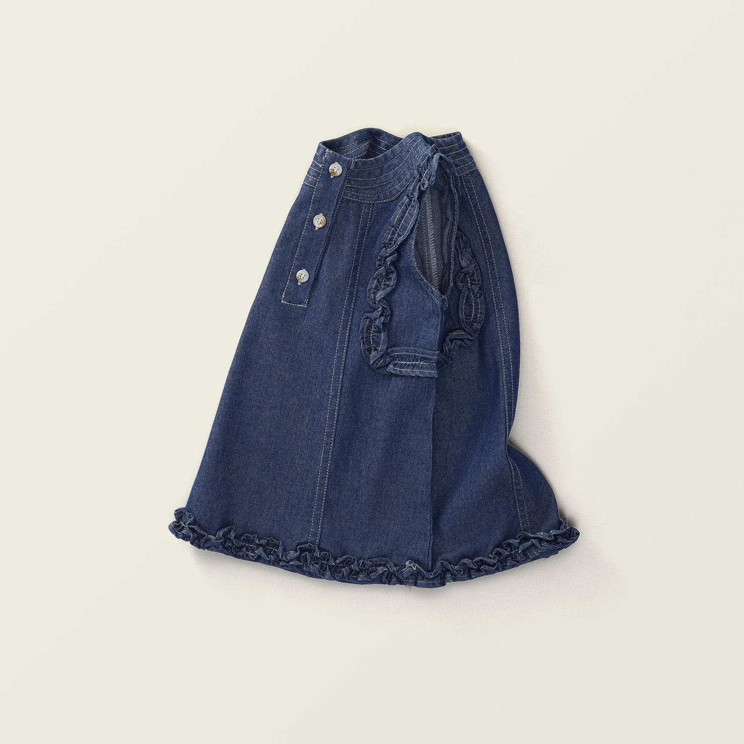 ジェラ子供服女の子ノースリーブデニムスカート2025夏の新しい子供の韓国スタイルのファッショナブルなレースドレスドロップシッピング