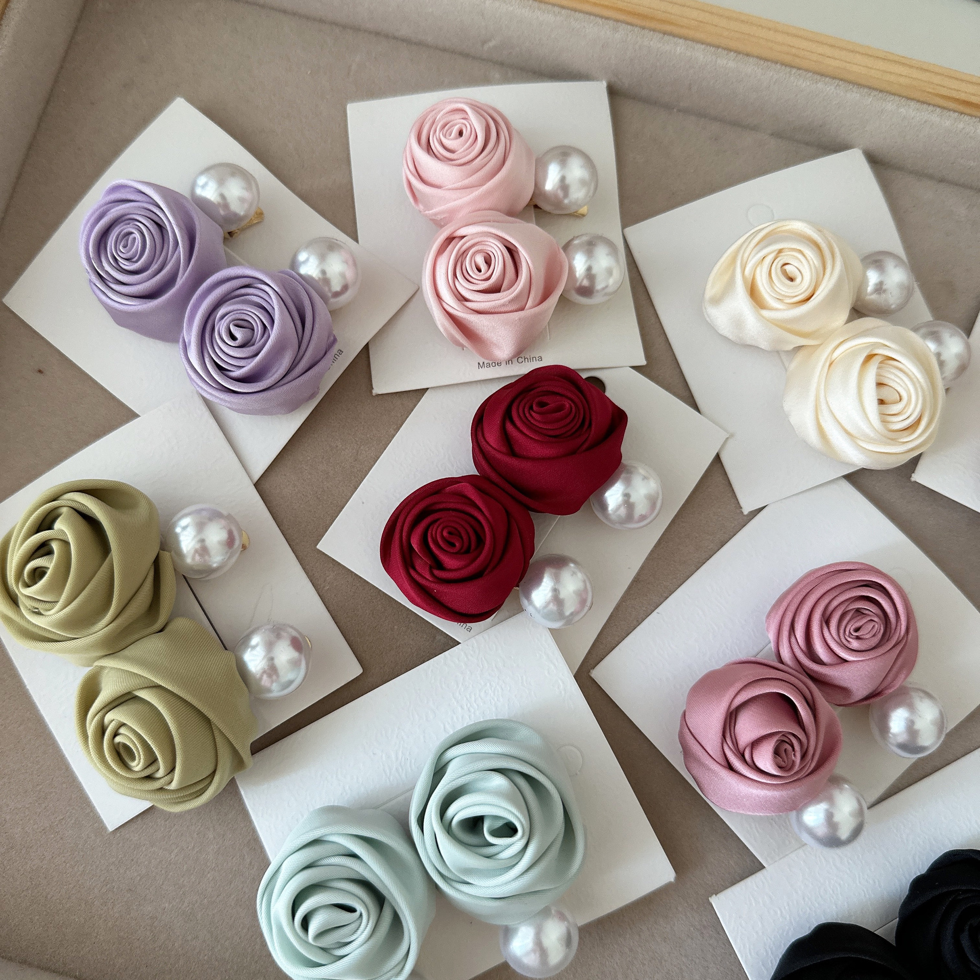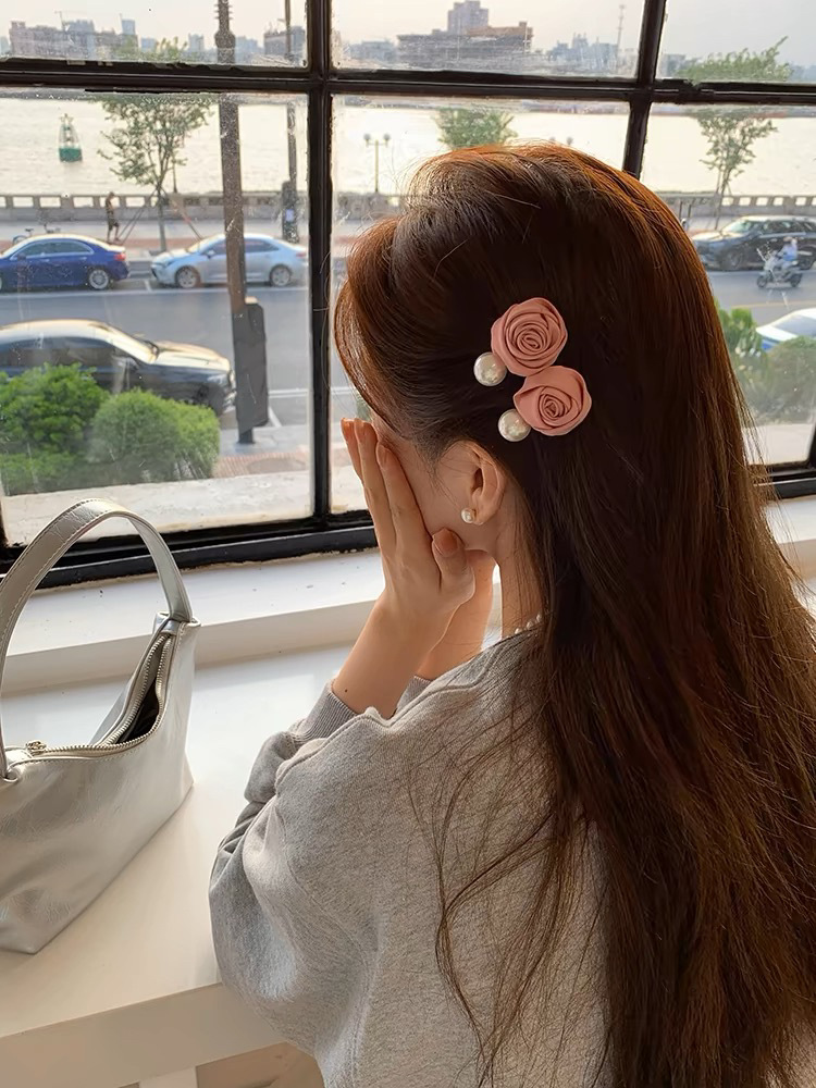 クリームの優しいバラの花の真珠の髪の飾りの髪のクリップの新型の後頭部のクリップの額の前髪のクリップ