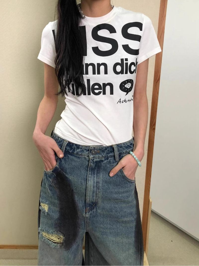 【210グラム40本の純綿】個性的なレトロなアルファベットのプリント半袖tシャツ女港風丸襟修身上