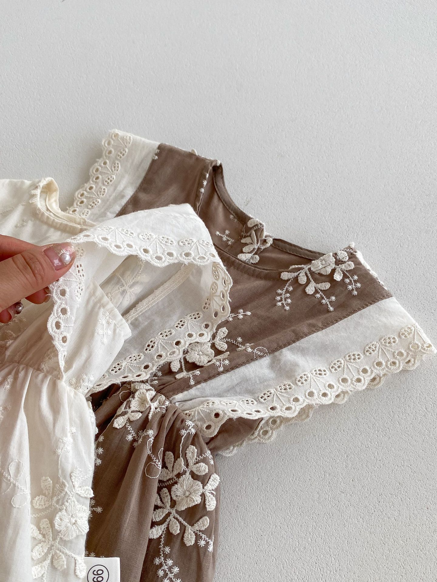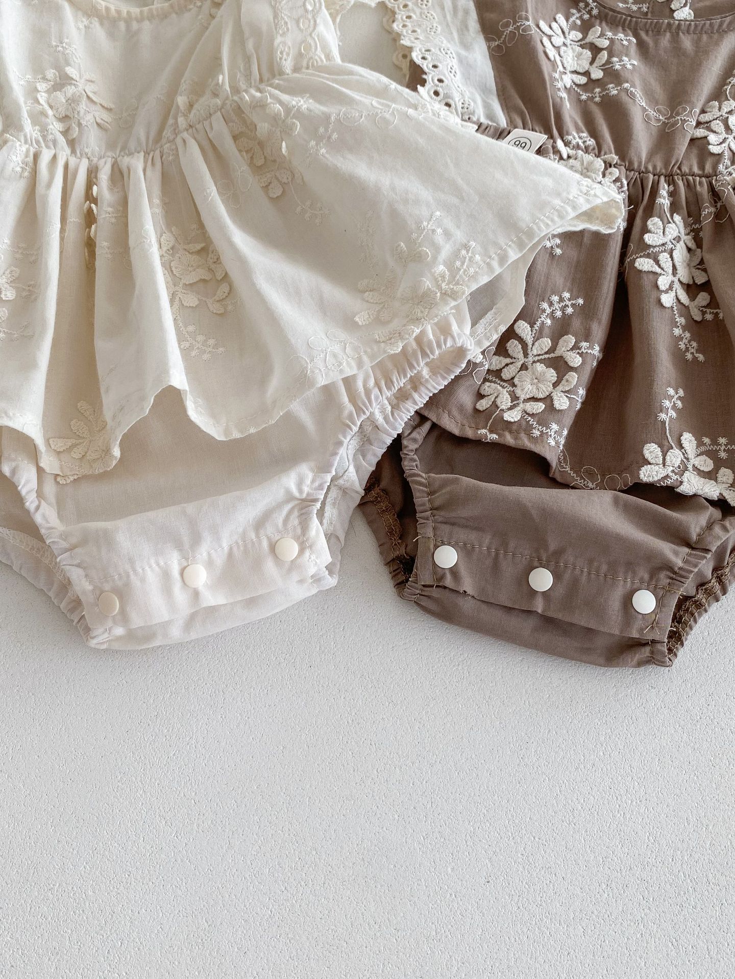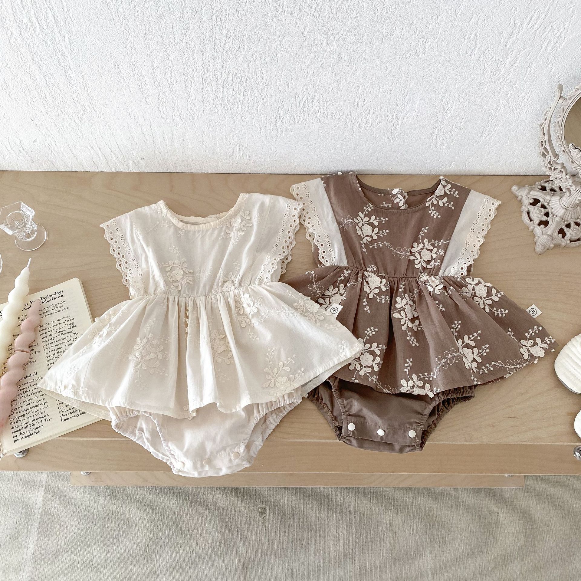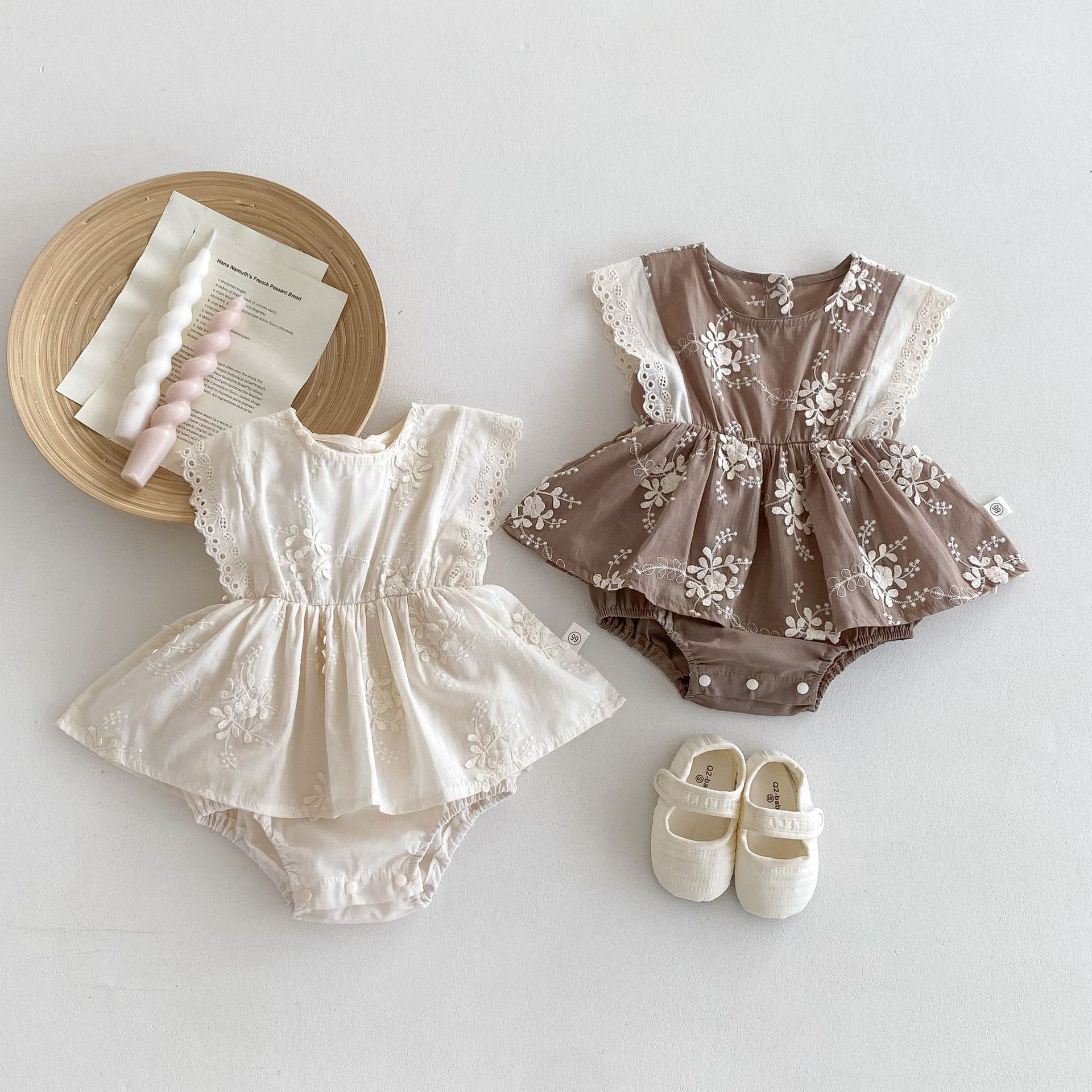 Ins韓国版赤ちゃんの袖なしのお尻の服の女性の赤ちゃんの洋気の刺繍のハスのスカートの夏の薄いタイプの外出は服を登ります。