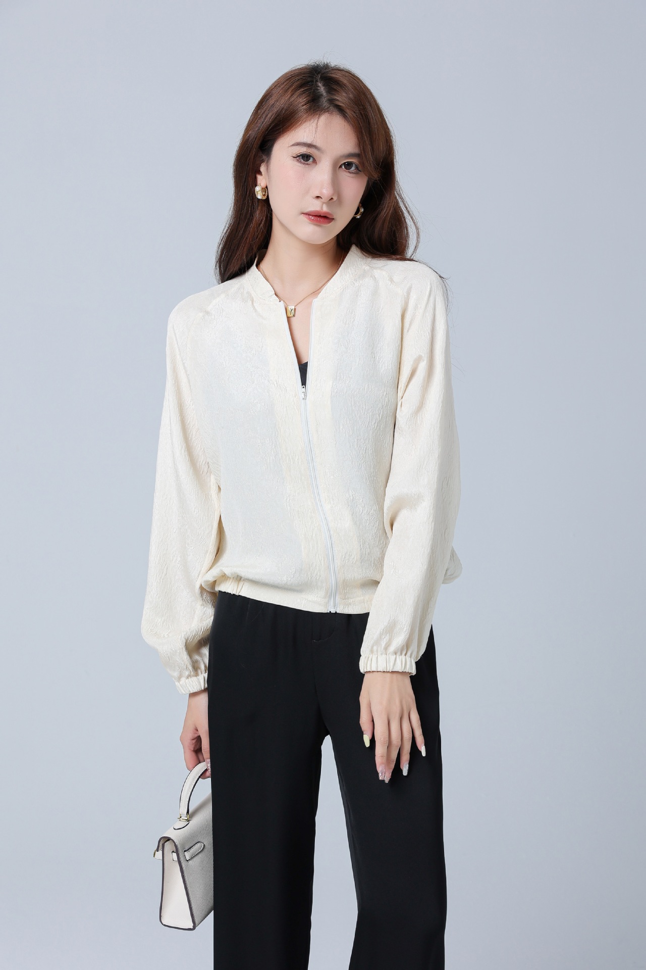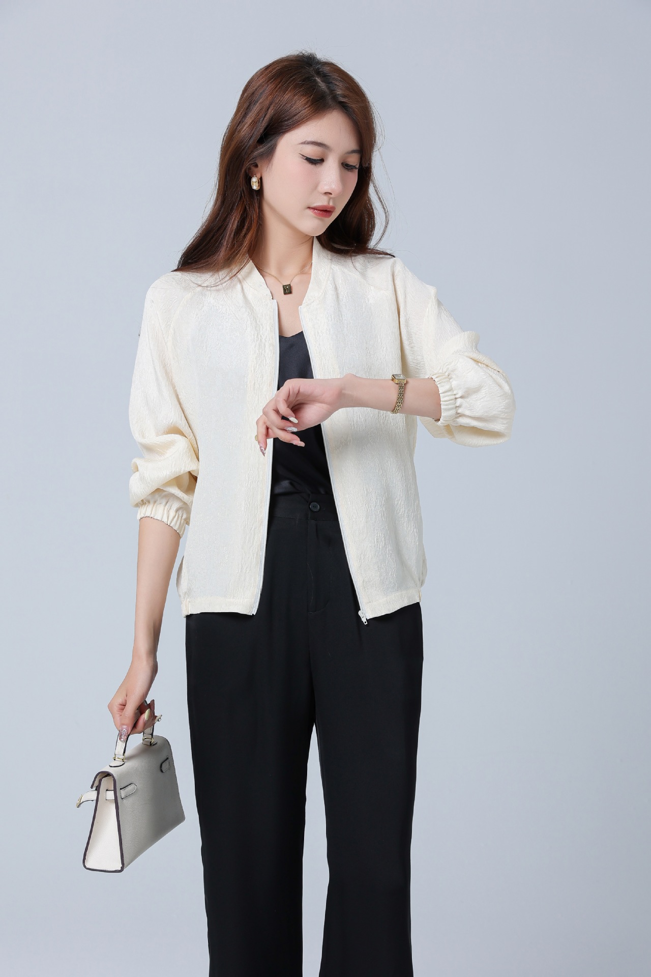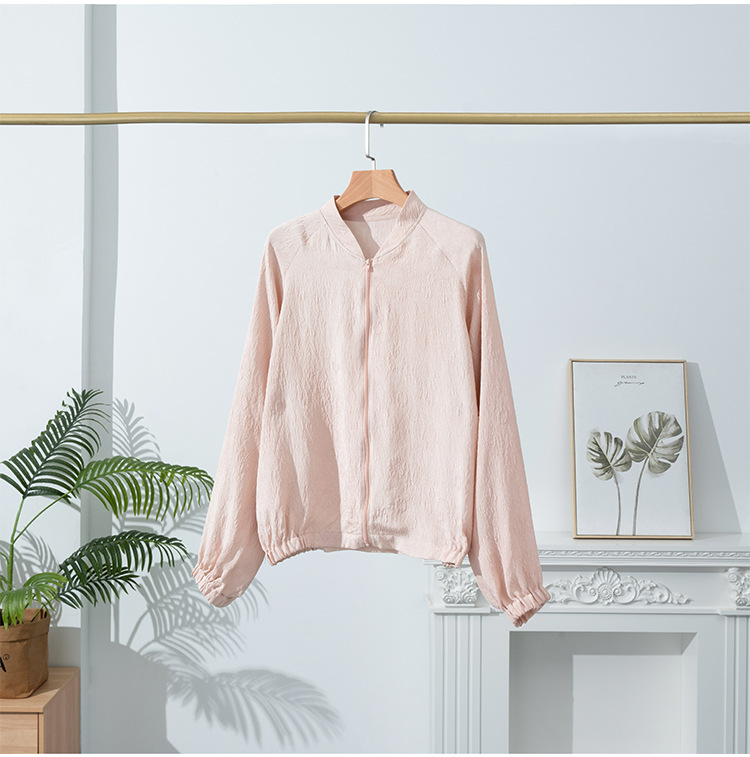 新しいマルベリーシルクジャケットヘビーシルク女性のジャケット通勤カーディガンプラスサイズの女性のトップ長袖野球ユニフォーム