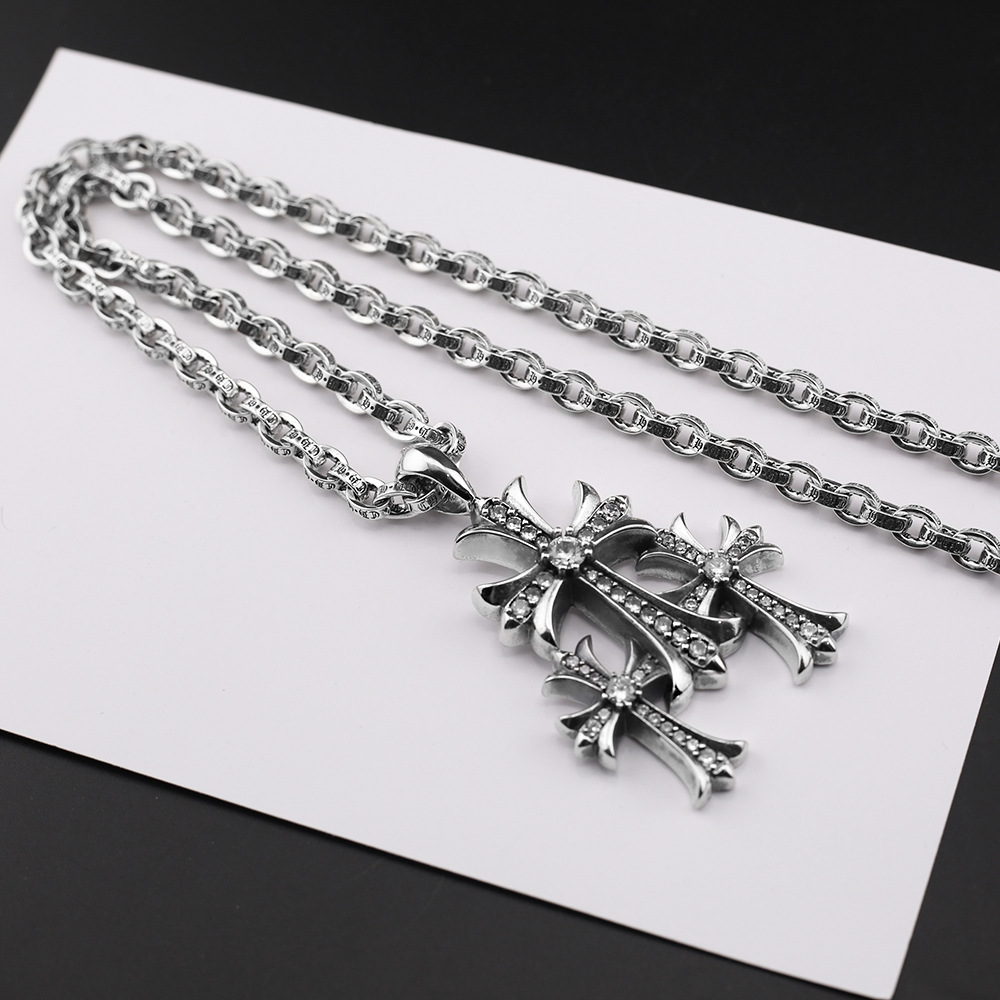 Chクロの新型レトロなダイヤモンドの泰銀の3つのクロスのペンダントは太いチェーンの個性の男女のネックレスをプラスします。