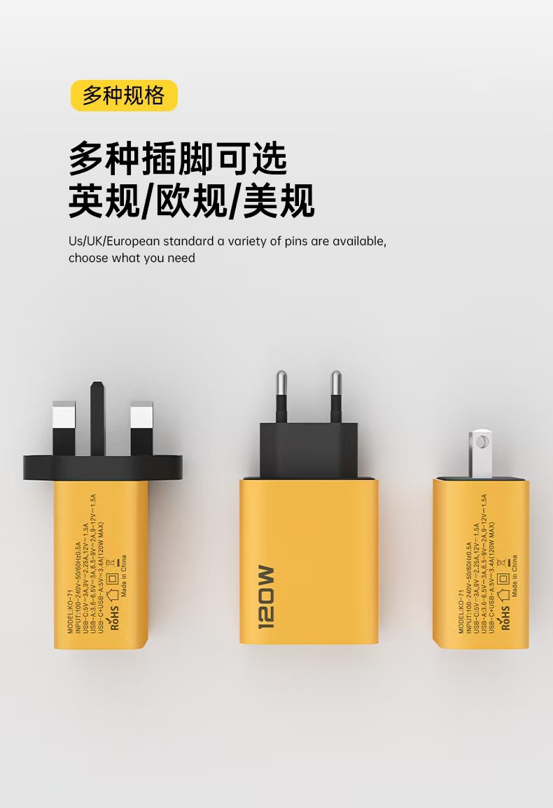 クロスボーダー120wダブルUSBダブルCマルチポート充電器はアップル華為英欧米規格充電器卸売りに適している