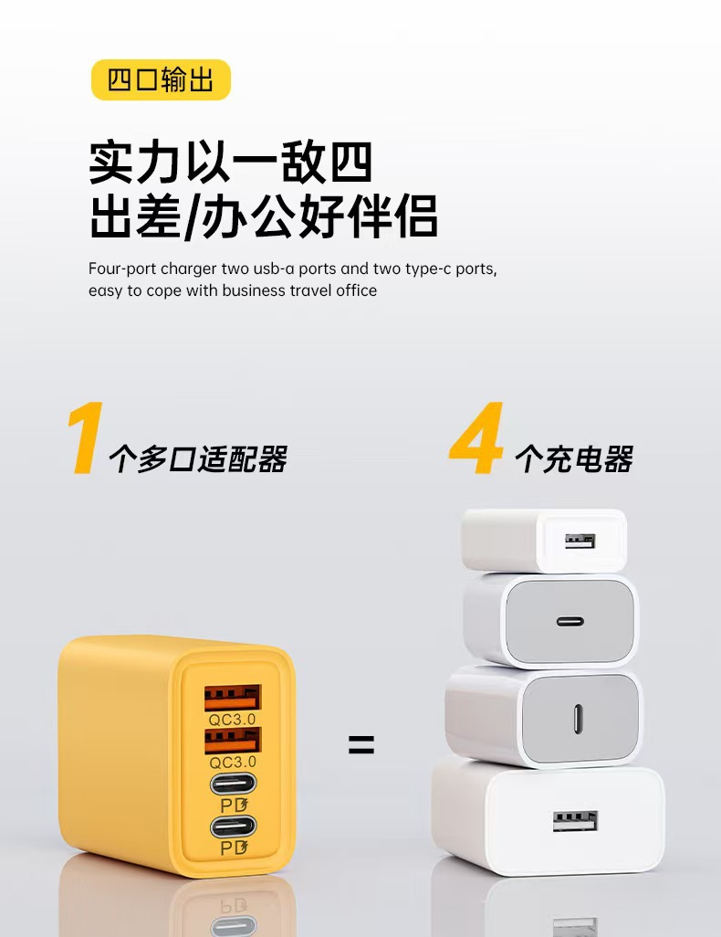 跨境120w双USB+双C 多口充电器适用于苹果华为英欧美规充电器批发
