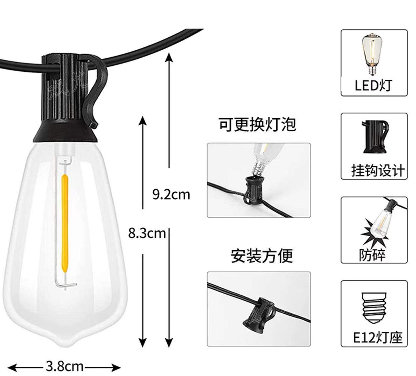クロスボーダーLEDライトストリングST38プラスチック屋外祭りガーデンウェディング庭装飾ライト防水クリスマス装飾ライト