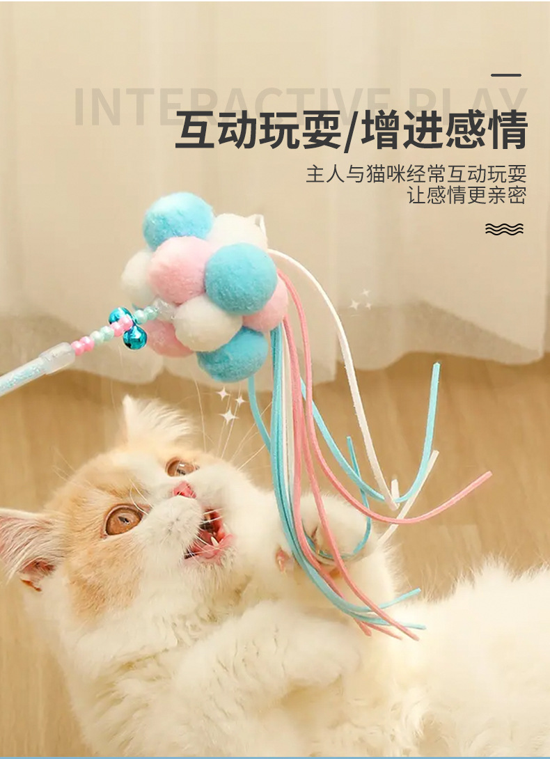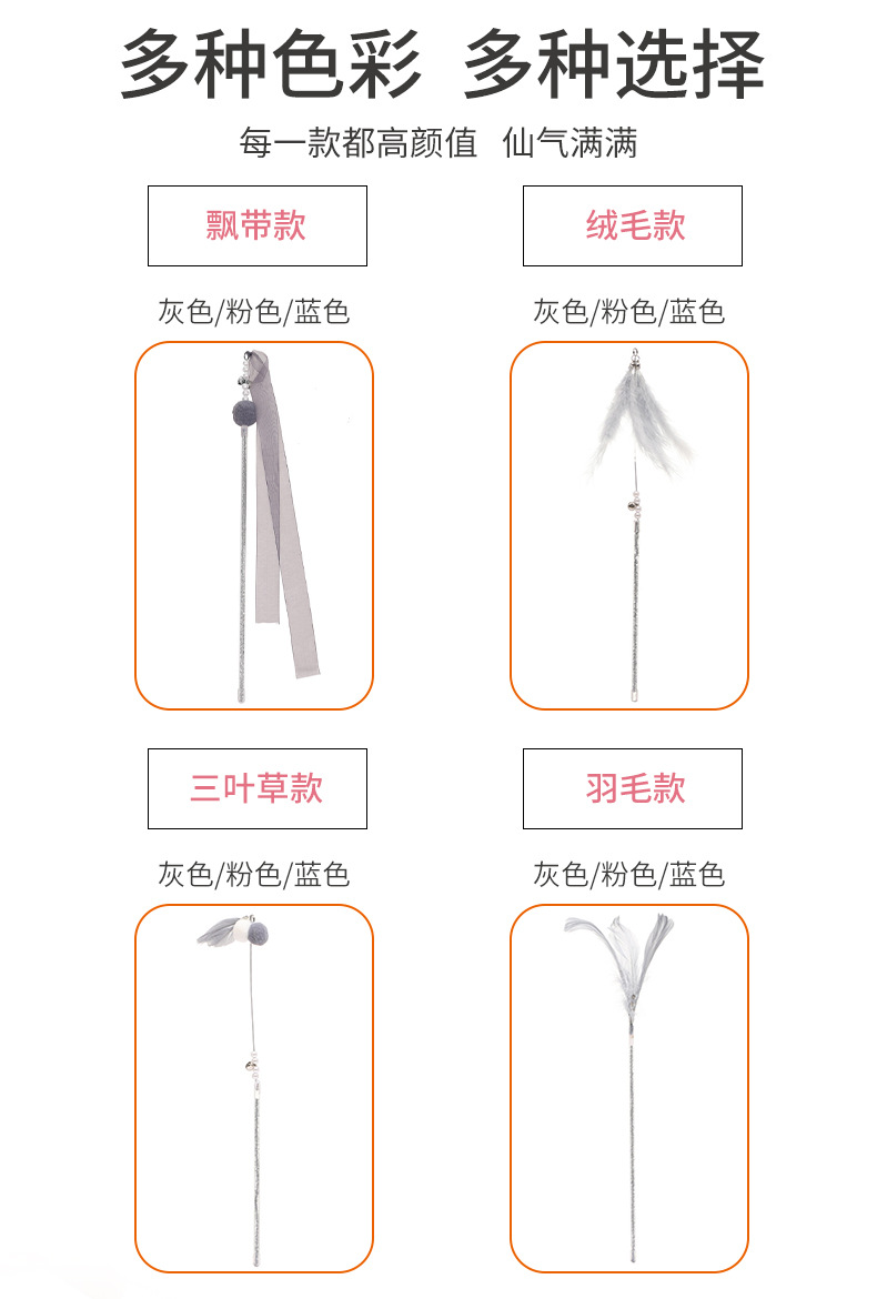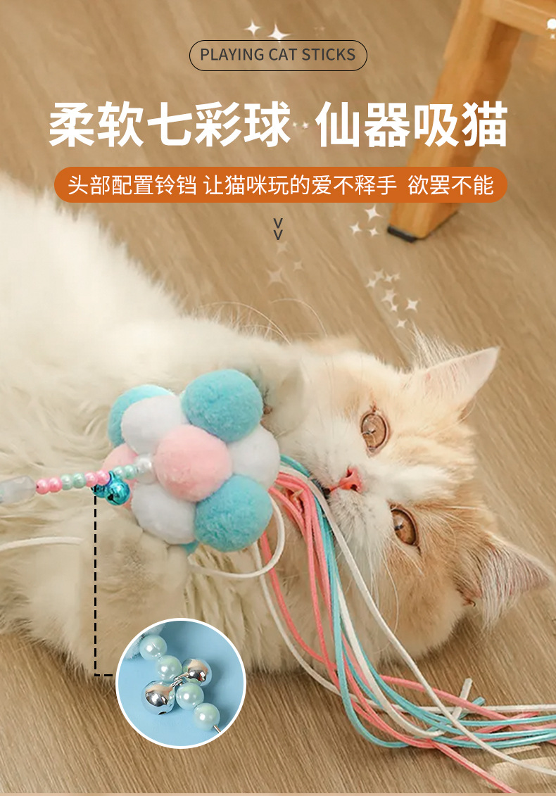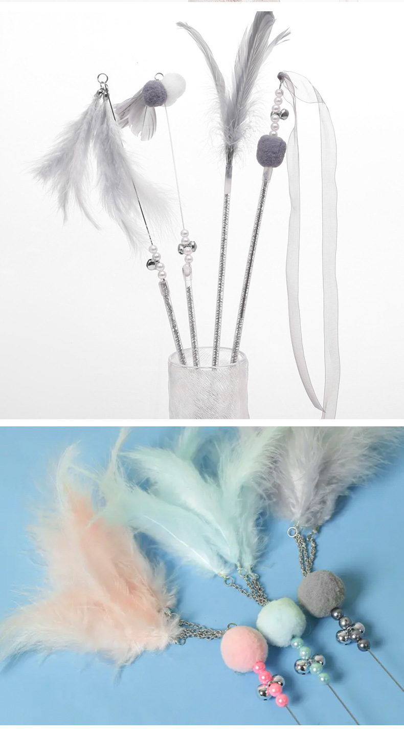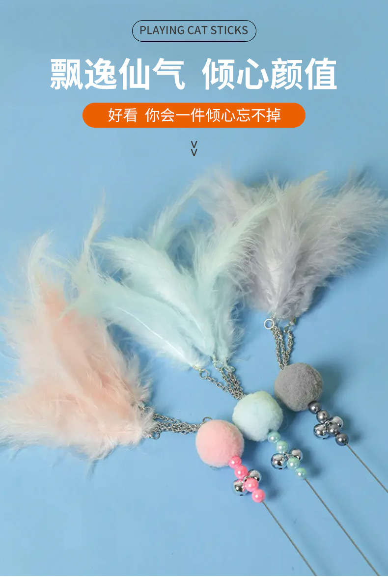 国境を越えた新しい猫のおもちゃ、猫の面白いスティック、妖精のスティック、自己刺激ベル、羽の長いポール、噛みつきにくいペット用品卸売