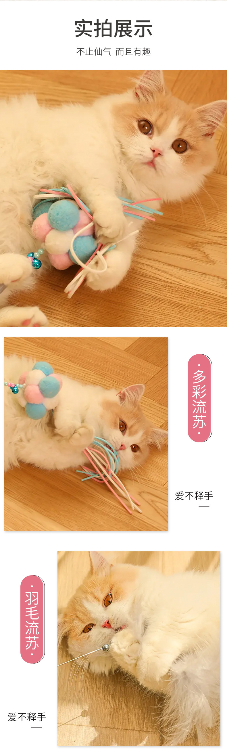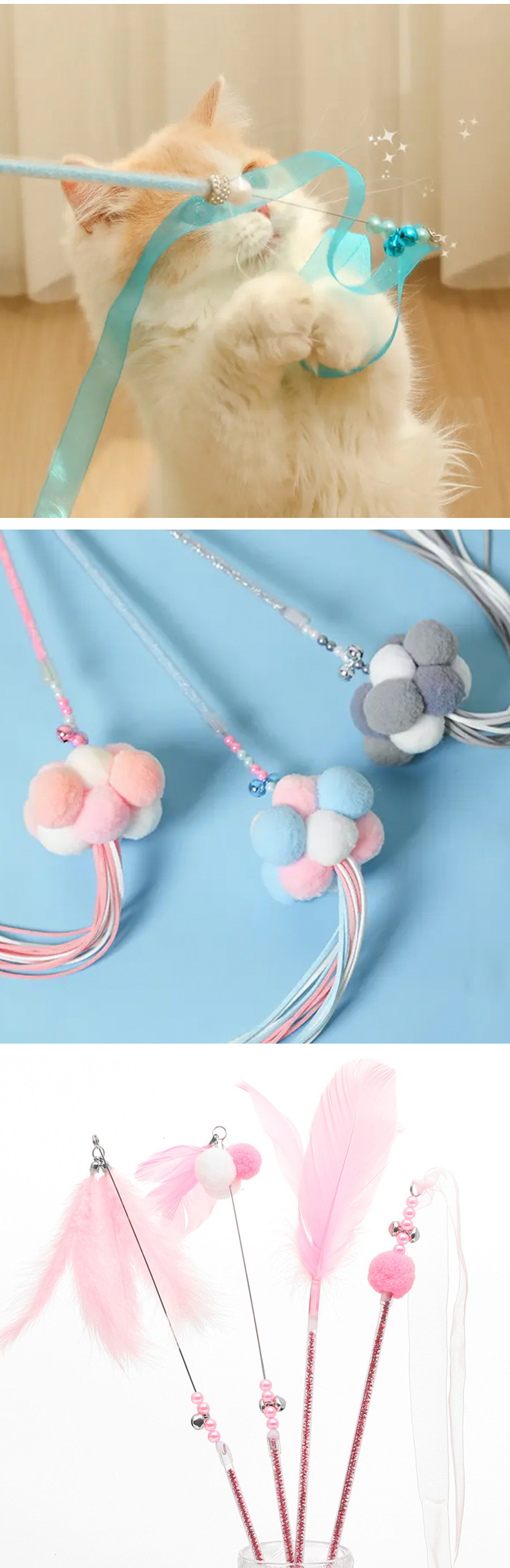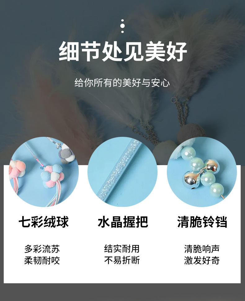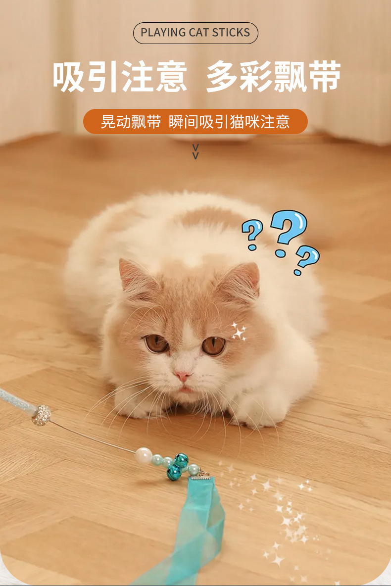 国境を越えた新しい猫のおもちゃ、猫の面白いスティック、妖精のスティック、自己刺激ベル、羽の長いポール、噛みつきにくいペット用品卸売