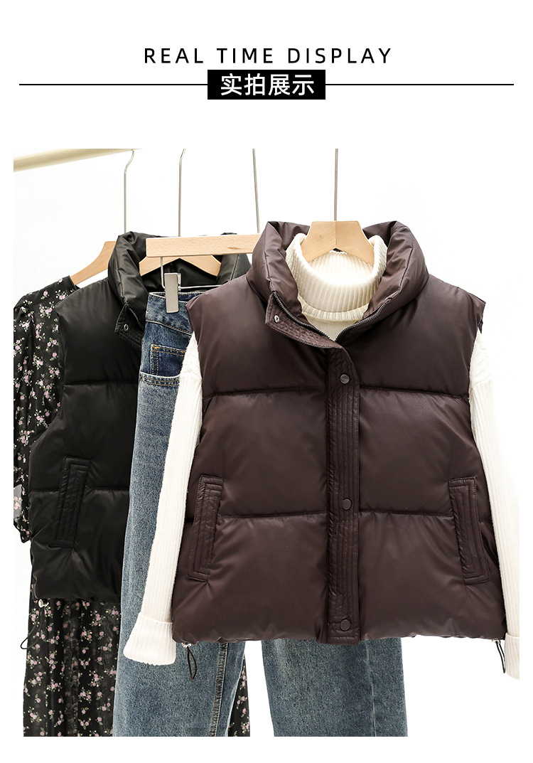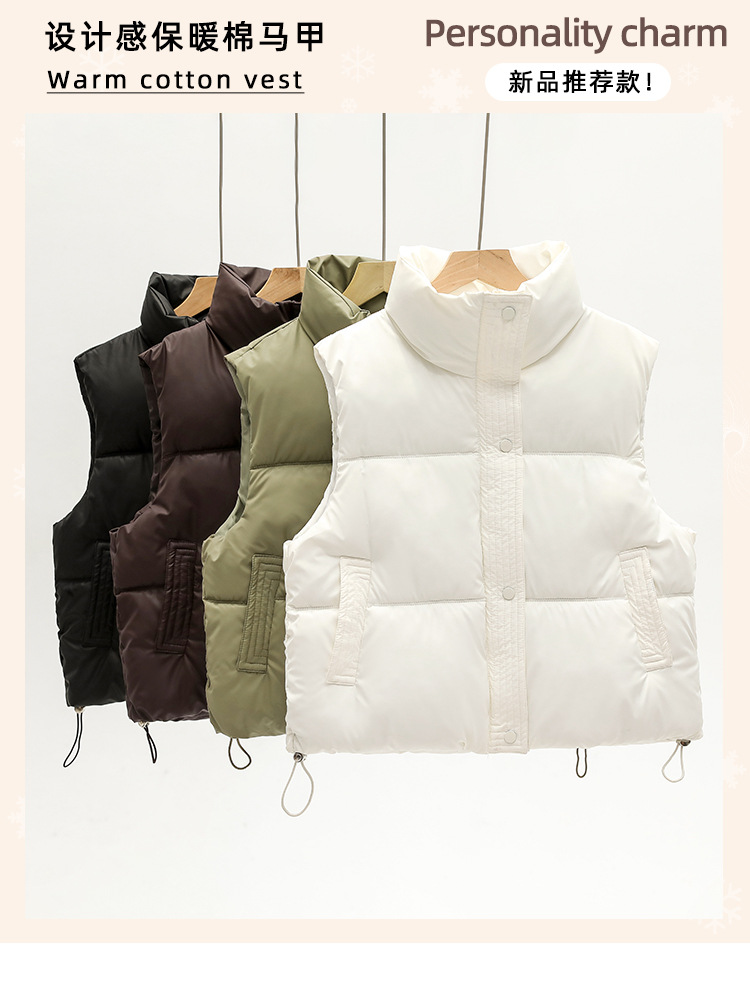 外国貿易のクロスボーダーのダウンの綿服の馬甲の女性は綿の服の短いタイプの秋冬の修身の袖なしの肩の上着の馬を着て潮を挟みます。