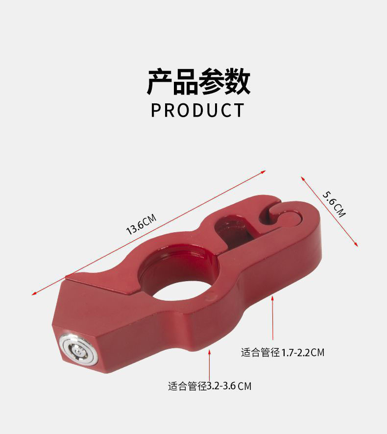 (赤いロープ付き) 小型合金ハンドルバーロック