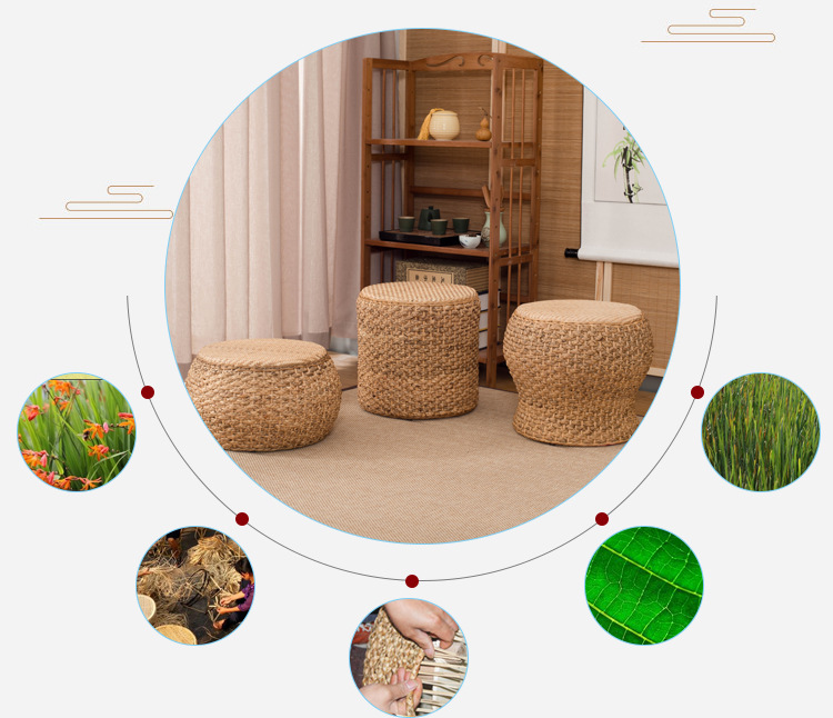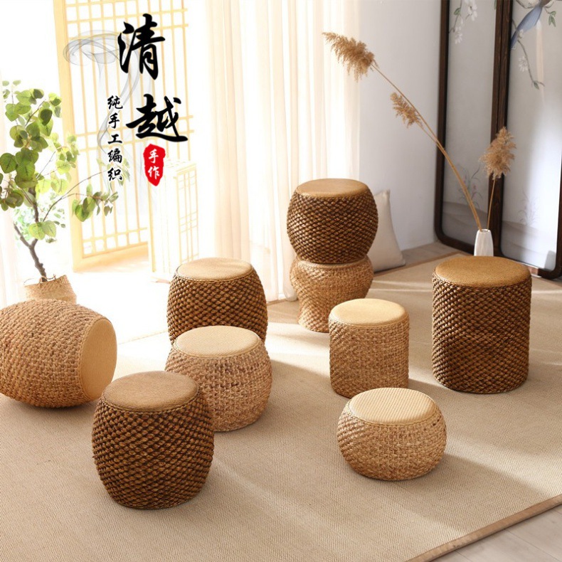 藤編みの低い腰掛けのベランダの腰掛けのベンチのソファーの腰掛けの草編みの家庭用の腰掛けの小さい腰掛けの丸い腰掛けの畳の椅子の北欧