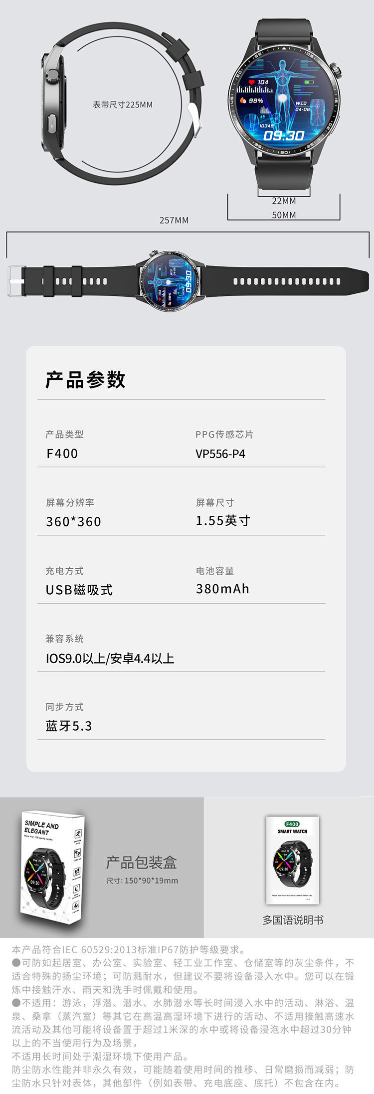 クロスボーダーF400スマート腕時計bluetooth通話心拍数血酸素睡眠モニタリング歩数運動腕時計知能ハンドリング