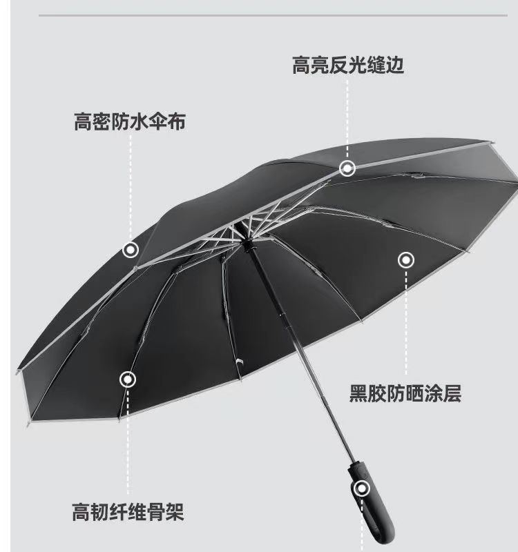 全自動晴れ傘逆自動折りたたみ両用傘黒ゴム日焼け止め反射プラスリング傘ビジネス傘
