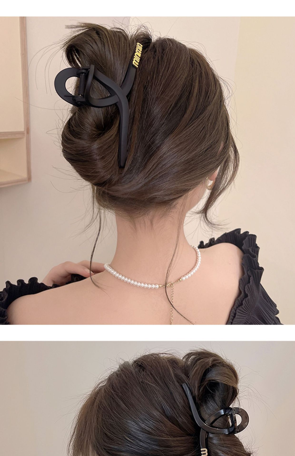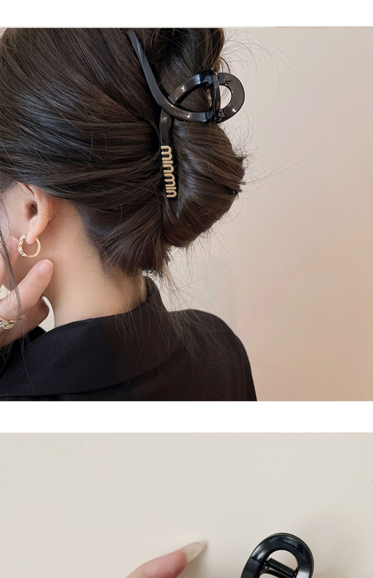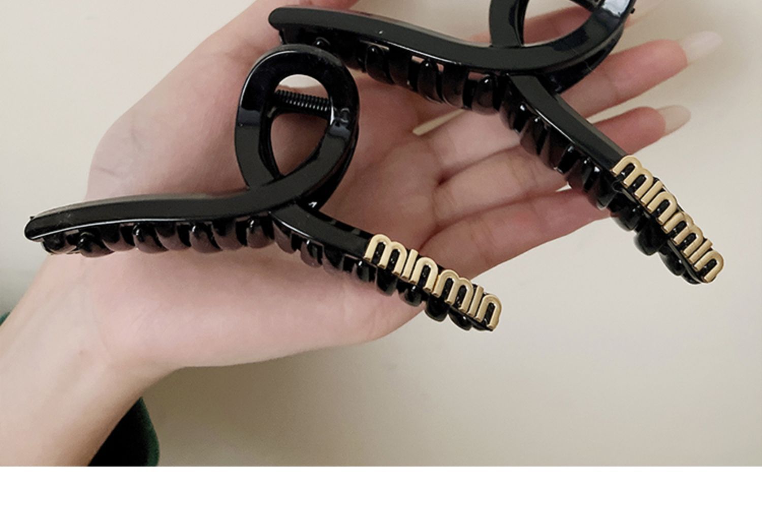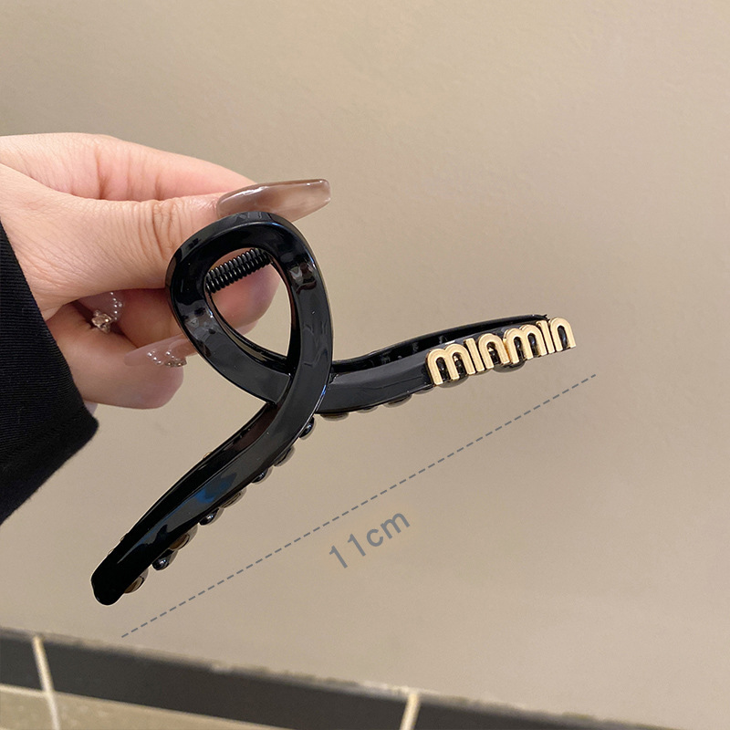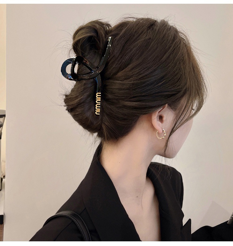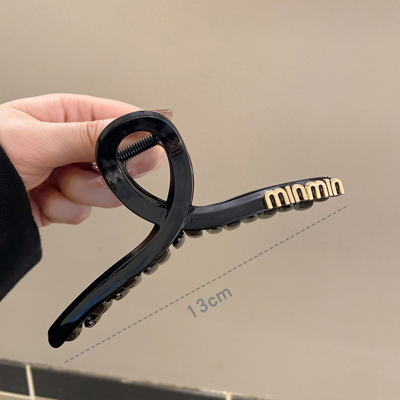 黒い髪のクリップの大きいサイズのシンプルなアルファベットのminヘアピンの女性の高級感の後頭部の髪のサメのクリップの頭飾り1